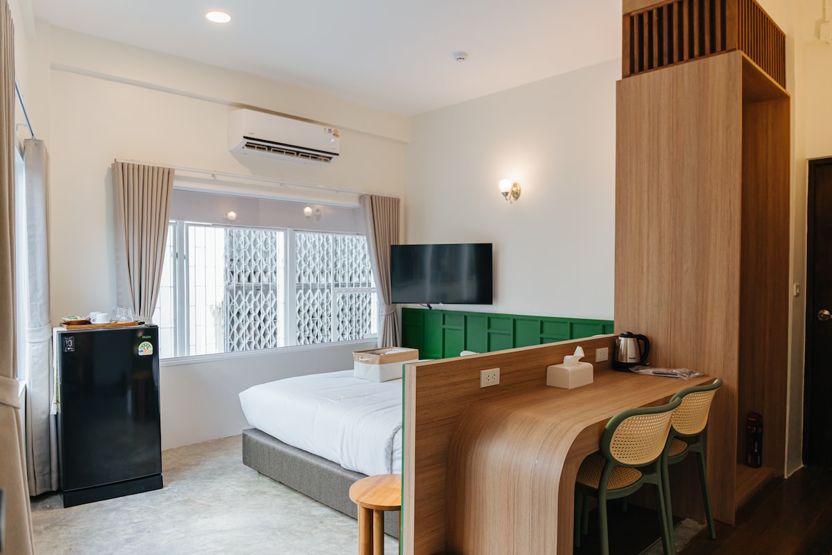 Wir sind stolz darauf, dir YaiMak vorzustellen, ein Kooperationsprojekt zwischen 3 Freunden mit Leidenschaft für Design und Gastfreundschaft. Deine Unterkunft ist eine Studio-Suite im zweiten Stock unseres neu renovierten SUPER GROSSEN Gebäudes mitten in Bkk, mit deinem eigenen privaten Badezimmer, TV, schnellem WLAN und einem großen Bett. Deine Suite ist Teil eines größeren Komplexes mit uneingeschränktem Zugang zu einem Dachgarten und einer Küche, einem privaten und einem Coworking-Space und vielen Spielen! Kostenlose Gepäckaufbewahrung und kostenlose Reinigung sind inbegriffen :)
