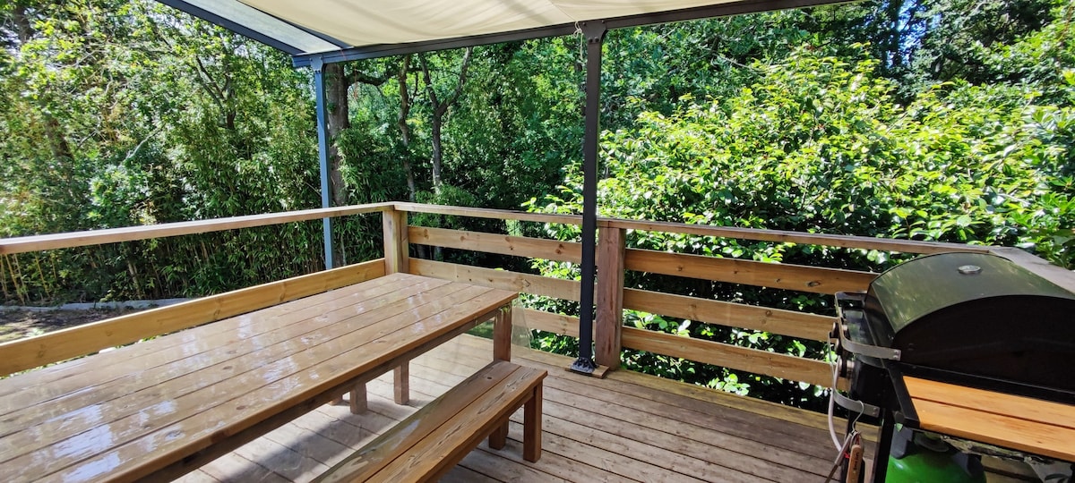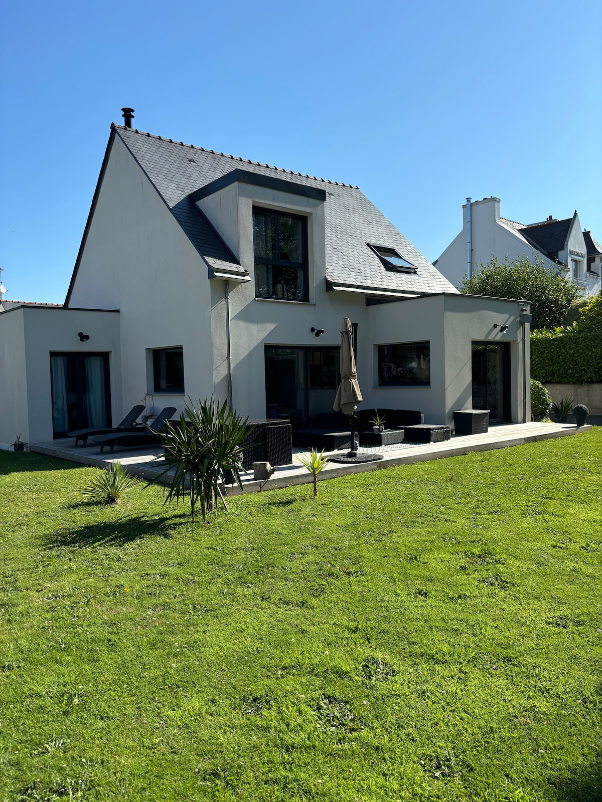In der Nähe des historischen Zentrums von Pont l 'Abbé (2 Minuten zu Fuß) am Ortseingang und 10 Autominuten von den Stränden entfernt. Große Unterkunft mit 4 Schlafplätzen. Im Erdgeschoss, ein großes Wohnzimmer, ein hochwertiges Schlafsofa, einen Fernseher, einen Schreibtisch, ein WLAN, eine Toilette, eine Veranda (für Raucher oder andere), eine ausgestattete Küche (Kaffee, Tee, Zucker...), ein Esszimmer, ein großes Ankleidezimmer, ein großes Schlafzimmer, ein Bett in der Größe, nach 2 Stufen, ein Badezimmer mit Spa und Hammam, eine kleine Terrasse und einen Grill . Kostenloser Parkplatz.