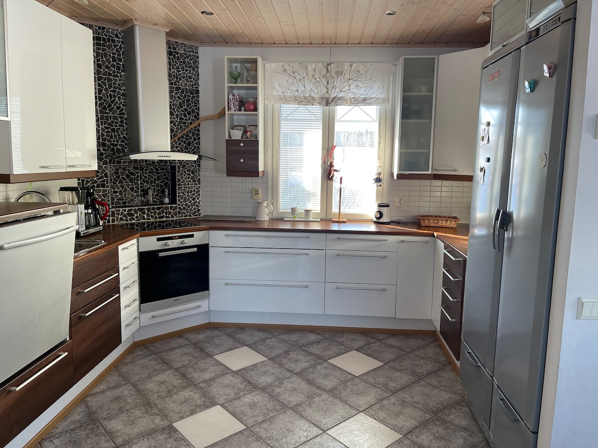 Das Haus befindet sich im Zentrum von Säkylä bei Pyhäjärvi. Geräumiges und helles Haus mit allem Komfort. Die Holzsauna steht zur Verfügung. Terrassen auf beiden Seiten des Hauses. Städtischer Strand und nahe gelegene Supermärkte und Dienstleistungen.