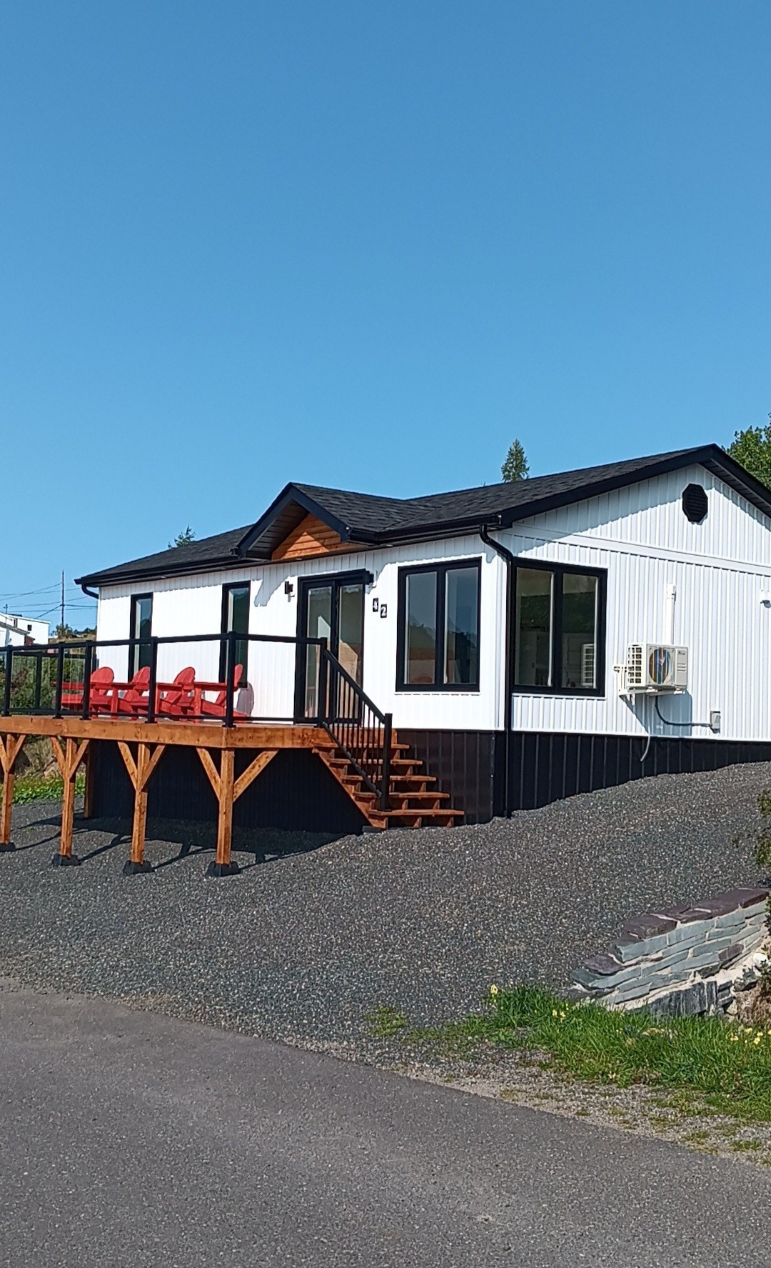 Ein schönes neues Chalet mit 3 Betten/2 Bädern im malerischen Port Blanford. Nur wenige Minuten vom Terra Nova Nationalpark und dem berühmten Twin Rivers Golfplatz entfernt. Dieses Chalet wurde für alle Jahreszeiten entworfen und verfügt über eine große Feuerstelle und einen privaten Whirlpool, um deine Muskelschmerzen nach einer langen Wanderung oder einem Tag auf der Piste zu lindern. Ausgestattet mit hochwertigen Möbeln und Bettwäsche. Dieses Chalet verfügt über ein Hauptschlafzimmer mit Queensize-Bett und einem kompletten Bad sowie einem Loft-Schlafzimmer mit zwei Etagenbetten mit jeweils einem Doppelbett und einem Einzelbett.