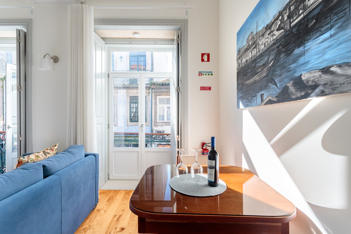 Diese Wohnung für bis zu vier Gäste befindet sich im zweiten Stock und verfügt über eine Klimaanlage, eine Waschmaschine mit Trockner, einen Meditationsraum/ein Mini-Fitnessstudio und einen Balkon mit Blick nach vorne. Das Schlafzimmer im unteren Stockwerk öffnet sich über eine Taschentür zum Wohnzimmer. In der Nähe der Rua de Santa Catarina und des Bolhão-Marktes. Für Gäste, die mit Kleinkindern reisen, steht auf Anfrage ein Baby-Paket (25 €) zur Verfügung, das ein Kinderbett mit Bettwäsche, einen Hochstuhl, eine Badewanne, Babyausstattung und ein Babyhandtuch beinhaltet.