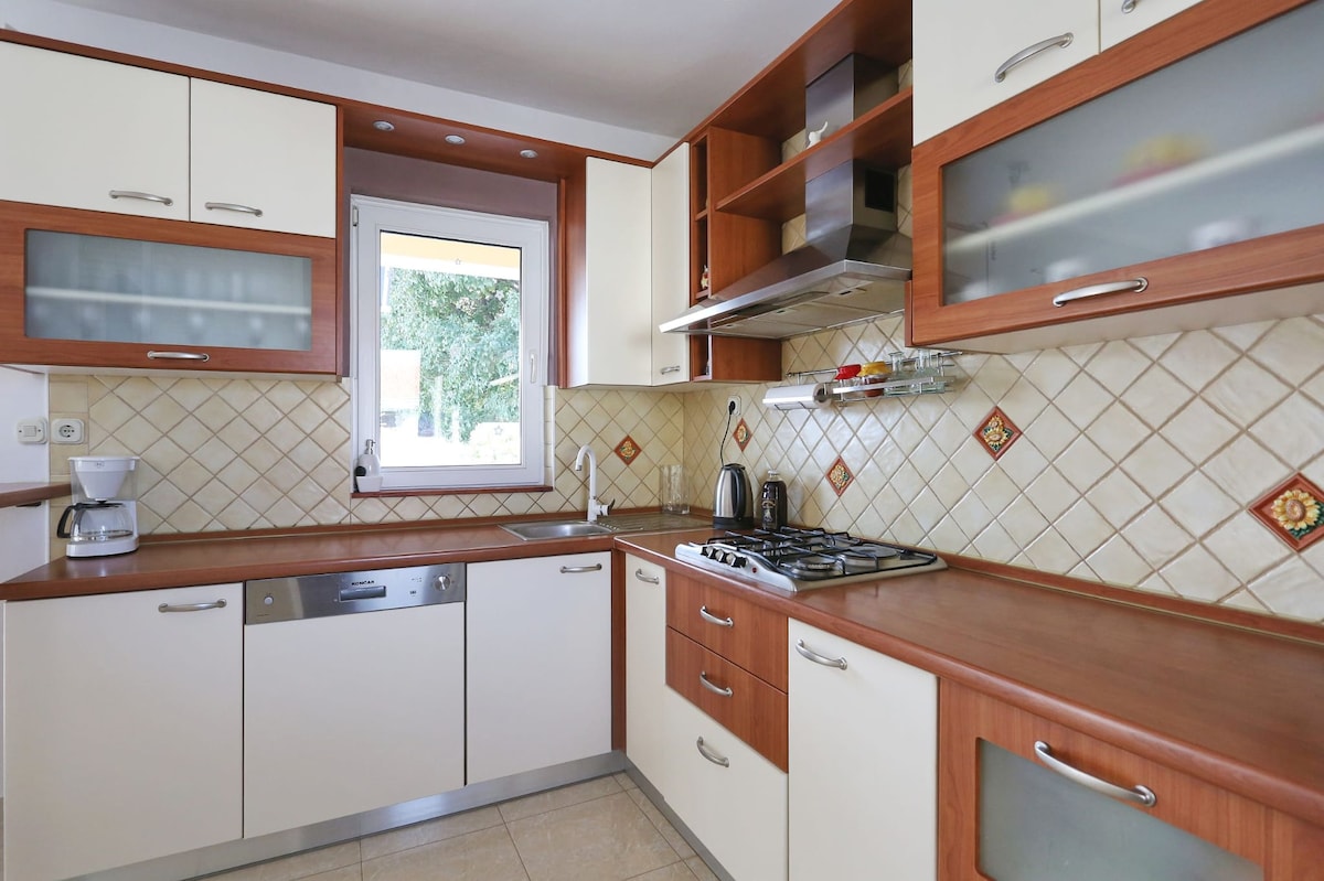 Vergiss deine Sorgen – in dieser geräumigen und ruhigen Unterkunft. Die Villa ist von Bäumen, Ruhe und Frieden umgeben. Ideal für einen Familienurlaub voller Entspannung und unbeschwertem Genuss. Entspanne dich am Pool, mache einen Spaziergang oder eine Radtour durch Wälder und Wiesen, lass die Kinder den Spielplatz genießen, mache ein Barbecue für Familie und Freunde oder entspanne dich in einem Whirlpool. Erkunde 1 von 4 Nationalparks in der Nähe, probiere die dalmatinische Küche bei einem Abend aus oder entdecke verschiedene Strände in der Nähe.