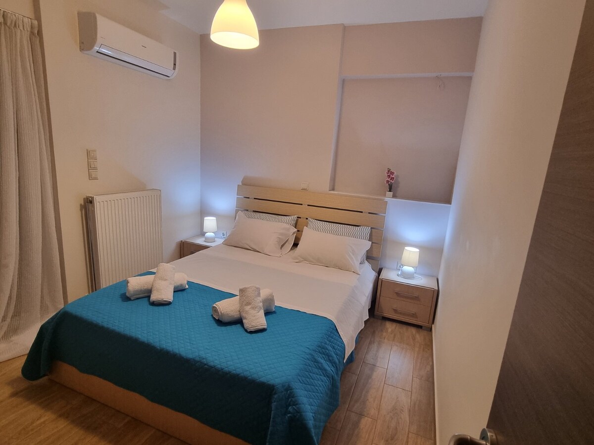 Unsere neu renovierte Wohnung liegt nur fünf Gehminuten vom berühmten kristallklaren Wasser und Kiesstrand von Loutraki entfernt und bietet Komfort und alle Annehmlichkeiten für einen angenehmen Aufenthalt. Es gibt ein Schlafzimmer, in das zwei Personen passen, und ein Wohnzimmer, in das zwei weitere Personen bequem passen. Wohnzimmer und Schlafzimmer verfügen über eine neue Klimaanlage und schnelles WLAN inklusive & Netflix auf Fernsehern. Der Strom vom Tag deiner Ankunft bis zum Ende deines Aufenthalts wird am Ende deines Besuchs hinzugefügt. Reisepassdaten für Steuern erforderlich.