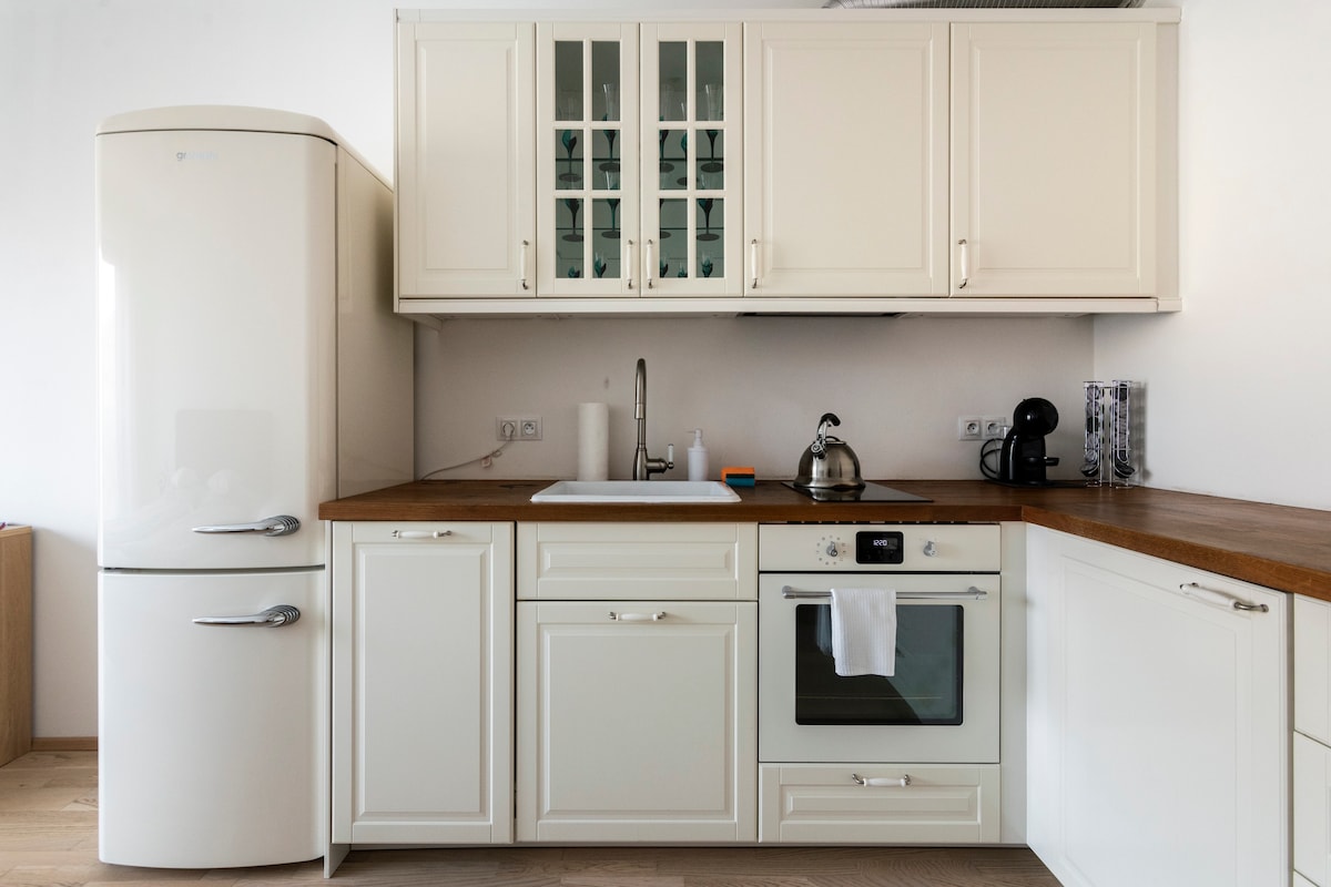 Geräumige und helle Unterkunft mit einzigartiger Aussicht in der alten Wohngegend. Luxuriös eingerichtete Wohnung bietet Komfort in jedem Moment deines Aufenthalts. Voll ausgestattete Küche, Badezimmer mit Dusche und Badewanne mit einer atemberaubenden Aussicht, TV mit Netflix, ruhiges Schlafzimmer mit einem komfortablen Bett. Cafés, Bäckereien und Bistros, Pubs mit dem besten tschechischen Bier und der besten tschechischen Küche, ein lokaler Markt gleich nebenan. Direkte öffentliche Verkehrsmittel zum Flughafen, Bahnhof, zur Prager Burg und zur Altstädter Astronomischen Uhr.