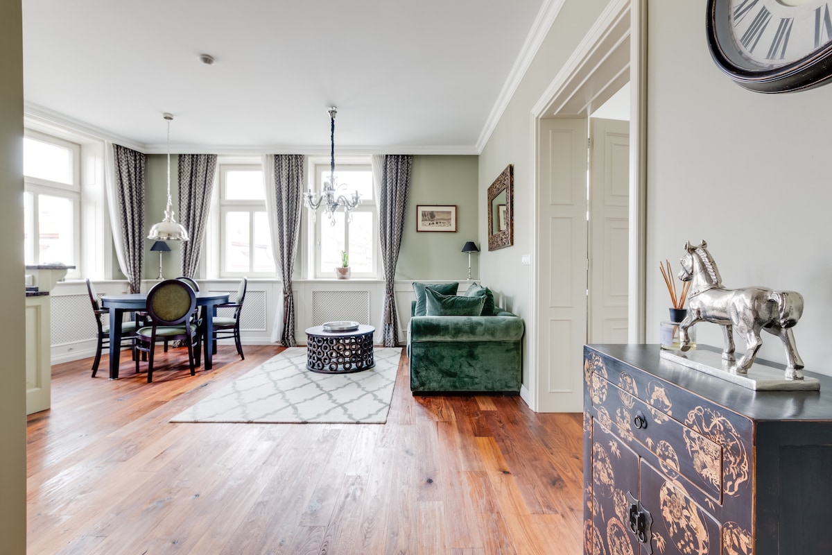 Neu renovierte und schön eingerichtete Wohnung in der Nähe des ALTSTADTPLATZES mit Renaissance-Treppe und vielen schönen historischen Elementen Die Wohnung bietet: kostenloses Highspeed-WLAN, eine voll ausgestattete Küche mit Geschirrspüler, einen Fernseher mit internationalen Sendern, schallisolierte Fenster, hochwertige Matratzen für einen komfortablen Schlaf, eine Klimaanlage und ein neues, modernes Interieur kombiniert mit wunderschön erhaltenen alten Holzböden. Bietet bequem Platz für 4 Gäste. Allen unseren Gästen werden Kaffee und Tees zur Verfügung gestellt.