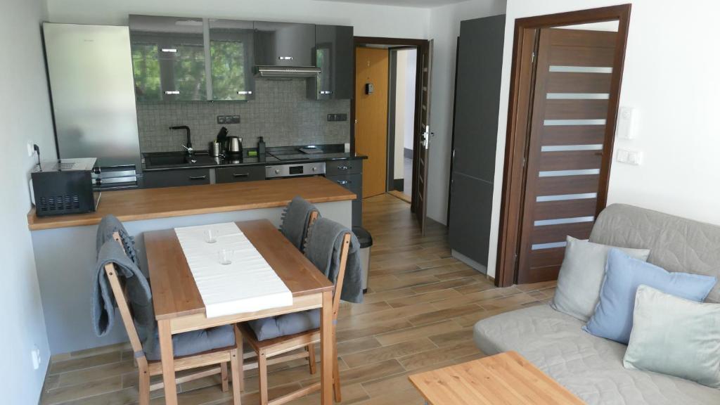 Neu eingerichtetes Blue Apartment - das gesamte Erdgeschoss eines Einfamilienhauses - umgeben von einem ruhigen Garten im englischen Stil, nur 15 Autominuten vom Stadtzentrum entfernt. Kostenloser Parkplatz direkt neben dem Haus. Geeignet für 4 Personen (+ Reisebett für ein kleines Kind auf Anfrage verfügbar). Eine Wohnung mit einem Schlafzimmer mit einem Doppelbett, einem Wohnzimmer mit einem Schlafsofa, in dem 2 Personen bequem schlafen können, Kabel-TV, WLAN, Esszimmer, Küche, Badezimmer und WC erwartet dich. Jedes Detail freut sich auf dich.