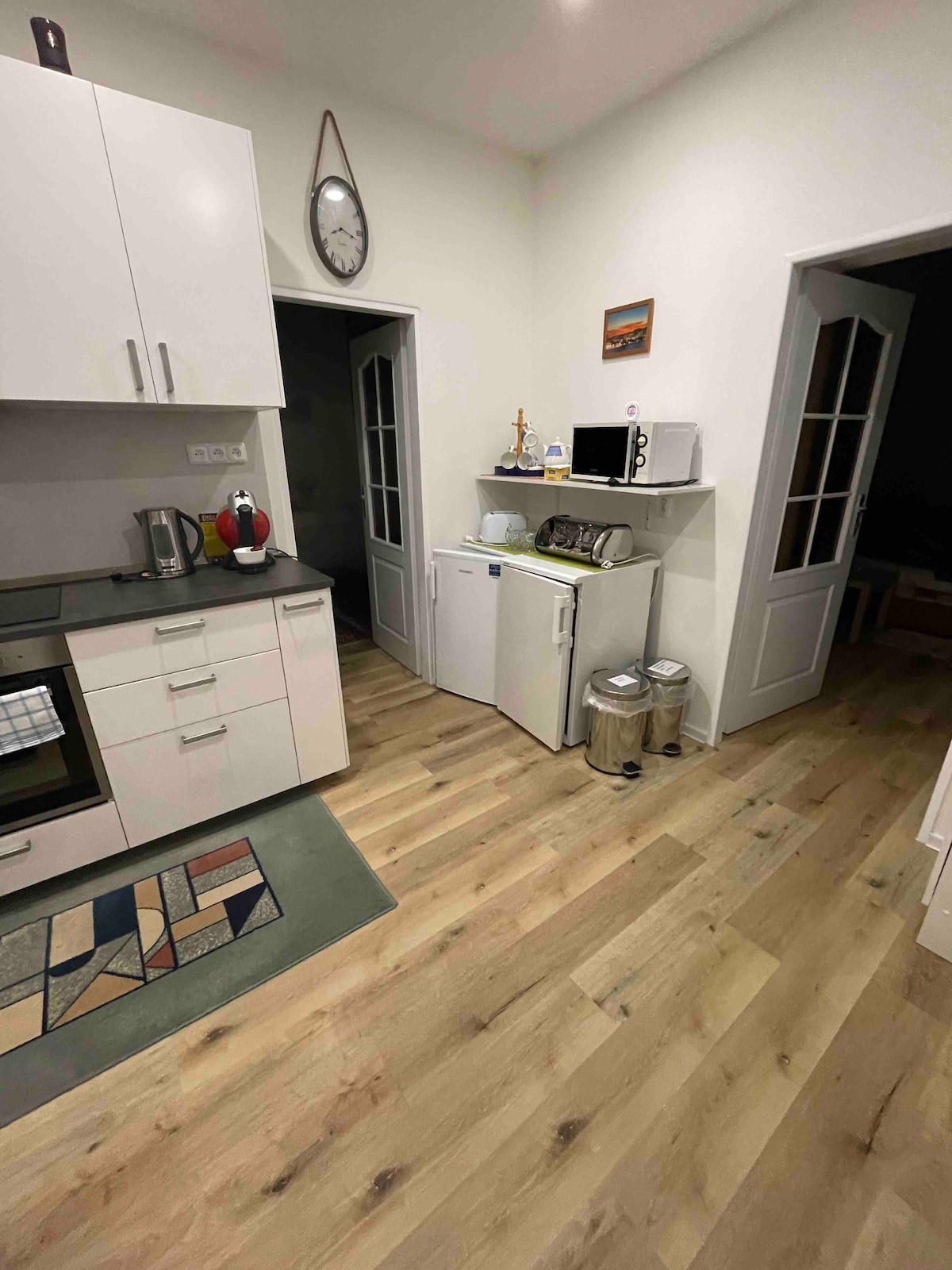 Die WOHNUNG wird nicht geteilt. Nicht für Kleinkinder geeignet – wenn wir zustimmen, zahlt das Kleinkind die Gebühr für eine zusätzliche Person. Sonderangebot. Für längere Aufenthalte – mehr Personen. Die WOHNUNG ist 3+1, 2 Zimmer sind abschließbar. Unterkunft – Gäste ab 4 Jahren können das 3. Zimmer nutzen – ansonsten gegen Gebühr. Verwendung von basicly-1 Schlafzimmer + Esszimmer + Küche zu vermieten. Schlafzimmer - Doppelbett+Schlafsofa als Bett geeignet. Küche voll ausgestattet. Parken auf der Straße kostenlos. Erzogene Kinder ab 6 Jahren sind willkommen. Sofa in der Küche – nicht zum Schlafen.