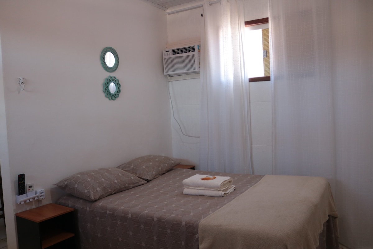 Das Haus Praiana verfügt über ein kompaktes Wohnzimmer mit offener, voll ausgestatteter Küche, Schlafzimmer mit Klimaanlage, Bad mit Warmwasserdusche. Privilegierte Lage, 900 Meter vom Strand Praia da Concha, 450 Meter vom Busbahnhof von Itacaré und weniger als 1 Minute von der Passarela da Vila entfernt. Einfacher Zugang zu Märkten, Apotheken, Geschäften, Bars und Restaurants ... Das Hotel liegt am Praça Santos Dumont, am Anfang von Pituba, das als eines der charmantesten Viertel von Itacaré gilt. Das Haus befindet sich im 1. Stock einer Wohnanlage.