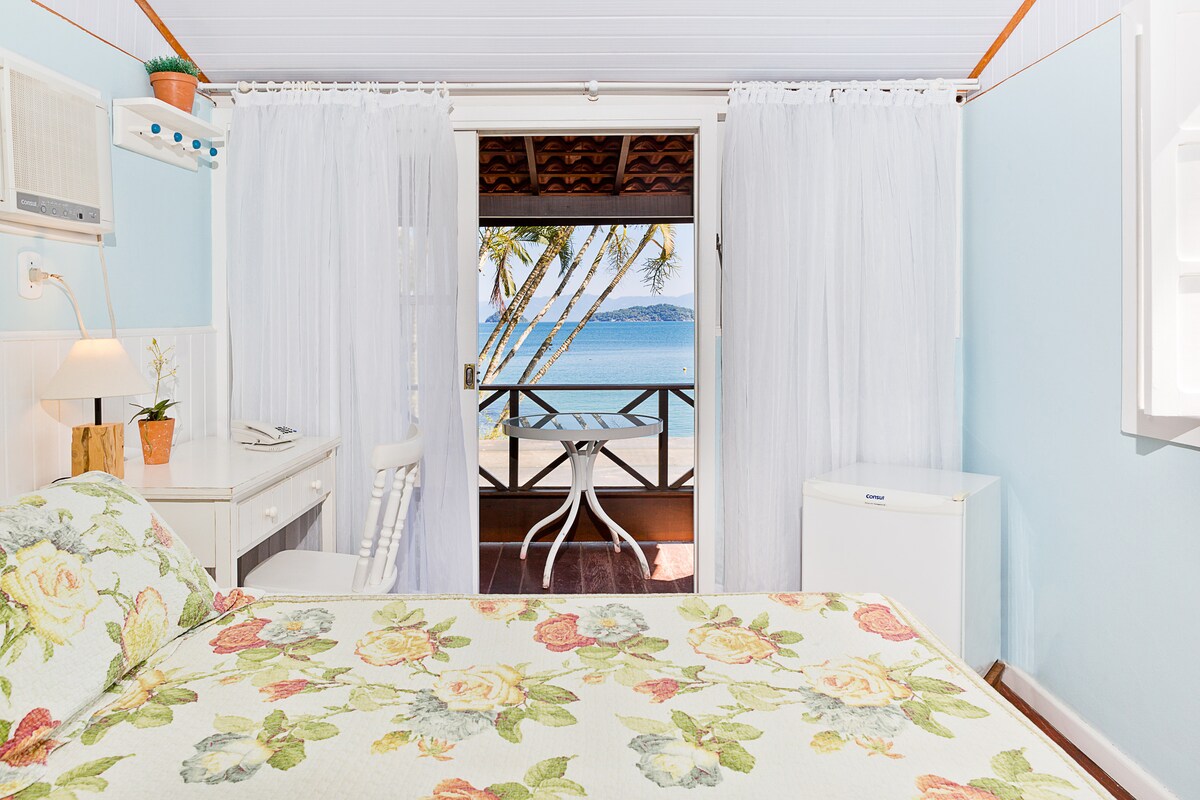 Unsere Gold Suite ist die Königin der Bella Mar Suite-Einheit, mit einer großartigen Lage, direkt am Strand von Vila do Abraão. Sie verfügt über einen kleinen Balkon mit Blick auf das Meer und unseren Garten, ideal für diejenigen, die sich wieder mit der Natur verbinden und sich in unserer Hängematte ausruhen möchten. Sie verfügt über eine Klimaanlage mit 10 BTUs, Sat-TV (Basiskanäle), eine durchschnittliche Minibar, einen Ventilator, ein Badezimmer mit elektrischer Dusche und befindet sich neben unserem Cantinho do Café, das mit Grundnahrungsmitteln ausgestattet ist.