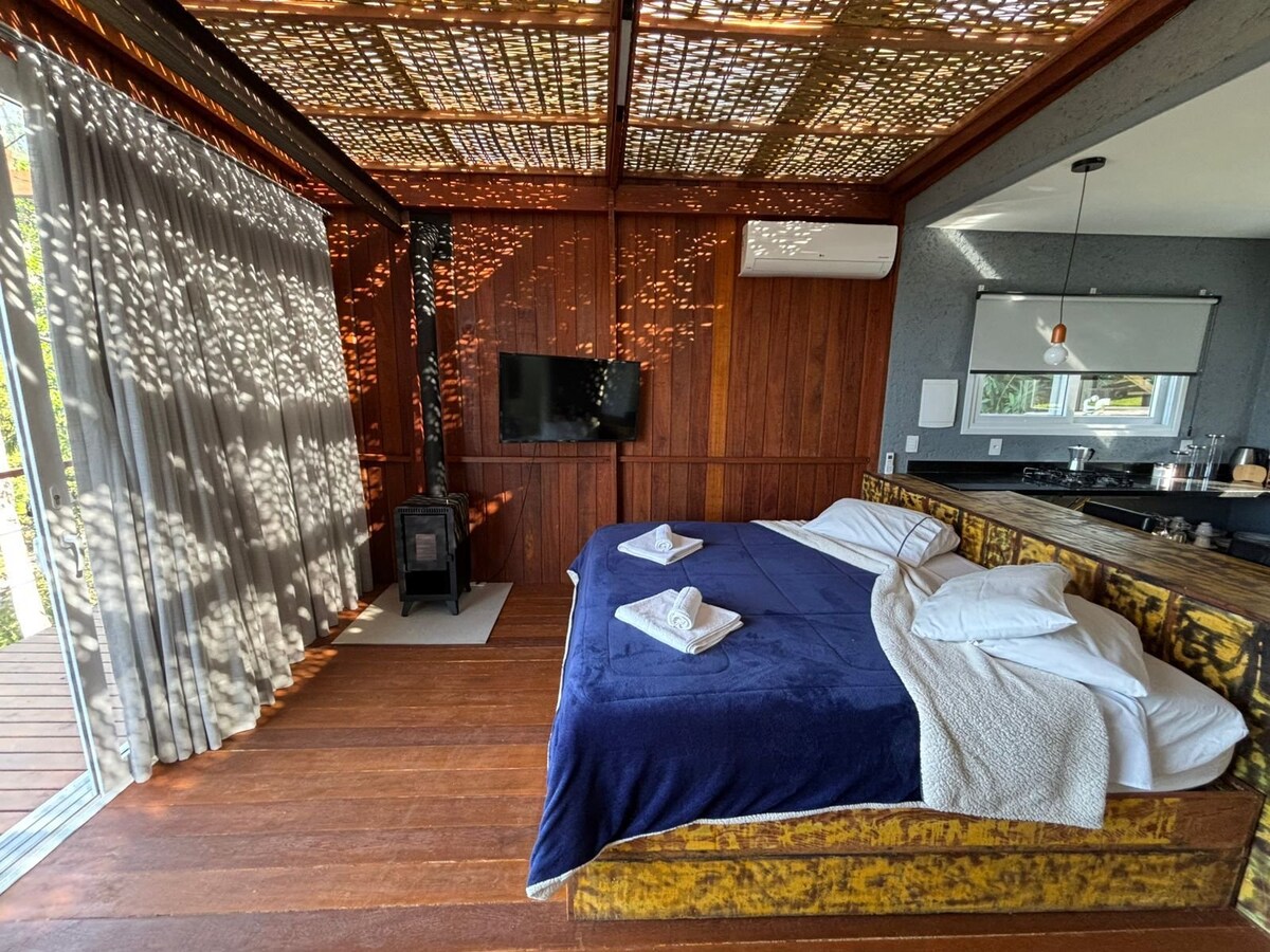 Ideal für Paare, hier findest du einen einzigartigen, gemütlichen Ort mit einer atemberaubenden Landschaft mit Blick auf das Meer, nur 5 Gehminuten vom Strand Solidão entfernt, ein ruhiger Ort für diejenigen, die die Natur mit großem Komfort genießen möchten. Die Cabana befindet sich in einer gepflasterten Straße und ist leicht zu erreichen, wir bieten sichere und kostenlose Parkplätze direkt unter der Unterkunft. Solidão ist ein ruhiger Strand, perfekt für naturliebende Paare, wir sind in der Nähe des Wasserfalls von Solitude und unglaublichen Wanderwegen.