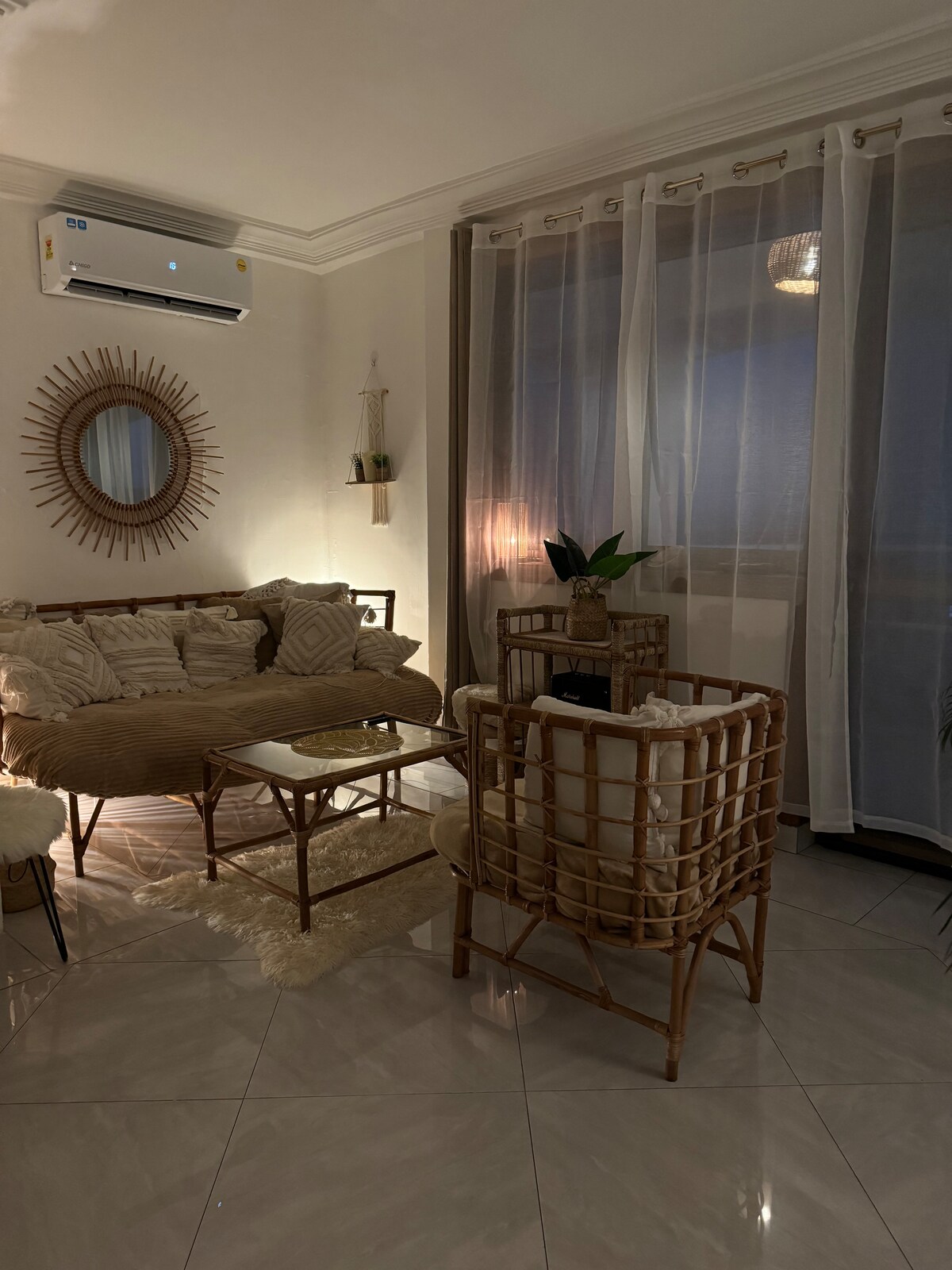 Genieße einen ruhigen und komfortablen Aufenthalt in dieser gemütlichen Ein-Zimmer-Wohnung mit eigenem Bad, klimatisiertem Wohn- und Schlafzimmer, einer voll ausgestatteten Küche, privater Terrasse, kostenlosem Parkplatz, Fernsehern in beiden Zimmern und einer Waschmaschine. In einer ruhigen Gegend mit einfachem Zugang zu Geschäften und Verkehrsmitteln gelegen, ist die Wohnung ideal für Alleinreisende und Paare. Eine tägliche Prepaid-Nebenkostenpauschale von 30 GHS und 6 GB Internet sind inbegriffen. Jede zusätzliche Nutzung geht zu Lasten des Gastes.