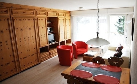 Modernes Studio in Neubau mit fantastischer Aussicht an zentraler Lage. See, Bergbahnen, Biketrails, Wanderwege - alles ist in kürzester Distanz erreichbar. Geniesse die Sonne am Morgen oder rot leuchtende Bergspitzen bei Sonnenuntergang direkt vom Tisch oder Bett. Eine moderne Küche inkl. Geschirrspüler und die grosszügige Dusche bieten viel Komfort. 5min zu Fuss zum Bahnhof Dorf. Schlafmöglichkeit: ein Hochbett (160*200cm). Für Haustiere wird eine zusätzliche Reinigungsgebühr verlangt.
