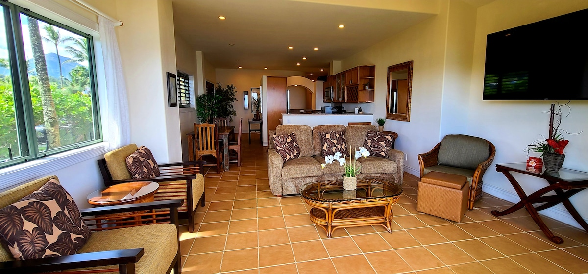 Diese offene, luftige Wohnung liegt inmitten wunderschöner Gärten zwischen Anini Beach und Princeville Center, entlang von Radwegen und einem Golfplatz und ist der perfekte Rückzugsort. Von der Veranda im zweiten Stock hast du einen atemberaubenden Blick auf die Berge. Koche köstliche Mahlzeiten in der geräumigen Küche und mache einen kurzen Spaziergang zum Schnorcheln am Anini Beach. Fahre zehn Minuten nach Hanalei, um dort Surfen für alle Niveaus zu finden, von Unterricht bis hin zu Weltklasse-Brechern. Genieße die Happy Hour im Happy Talk bei Sonnenuntergang und freu dich auf eine einzigartige Aussicht.