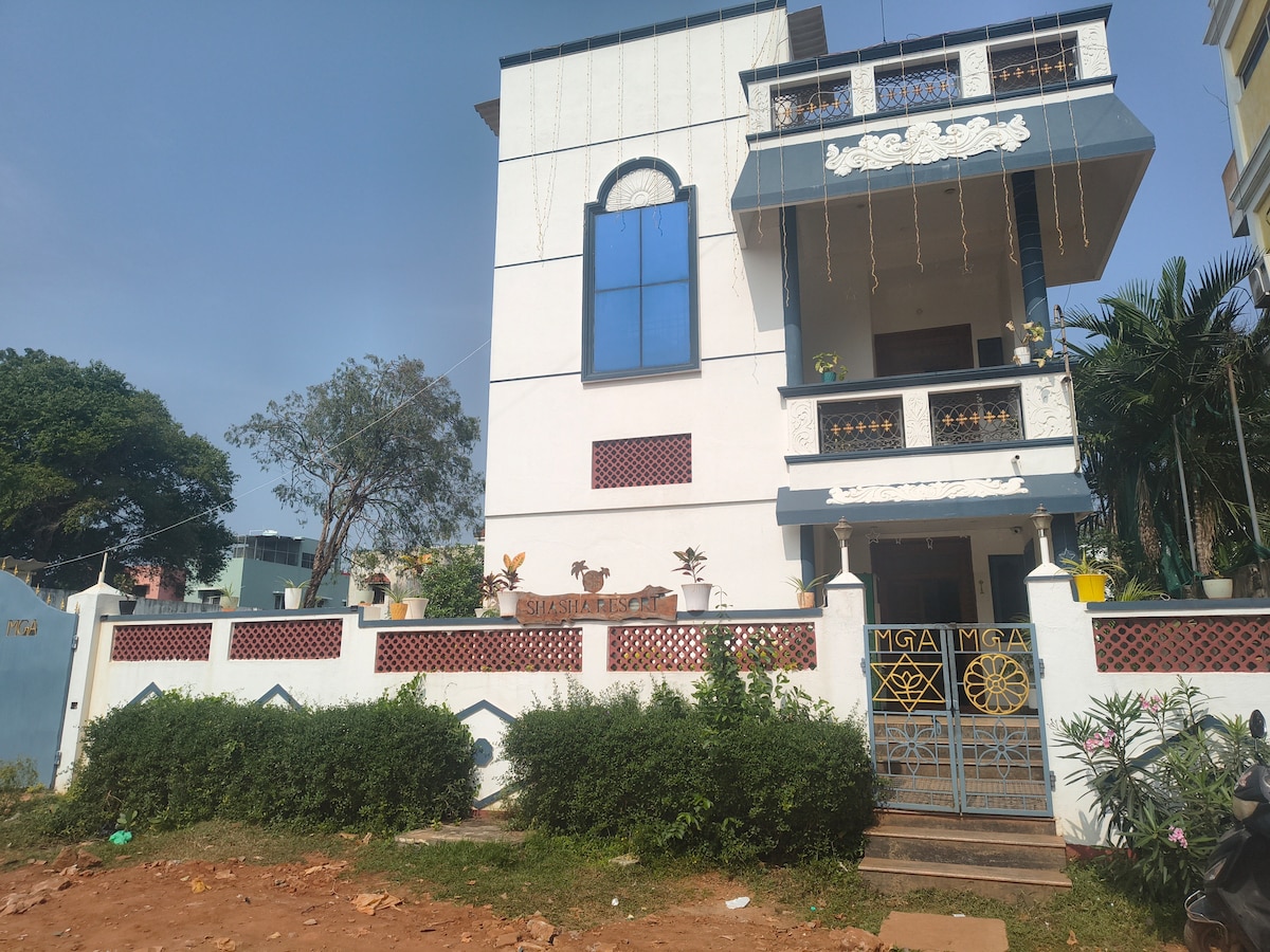 Moderne Villa in erstklassigem Auroville mit einem privaten Pool, umgeben von viel Grün. Zu Fuß zu Cafés, in der Nähe von Sehenswürdigkeiten und nur 5–10 Minuten vom Strand entfernt. Geräumige Schlafzimmer, Balkon, Garten und Sitzgelegenheiten am Pool machen es perfekt für Familien, Paare oder Gruppen, die Komfort, Privatsphäre und Entspannung suchen. HINWEIS : Ich werde nicht derjenige sein, der mit euch in Kontakt tritt, Es wäre Herr SANJAY, Eigentümer der Unterkunft, der ab der Buchung mit dir in Kontakt sein wird. Vielen Dank