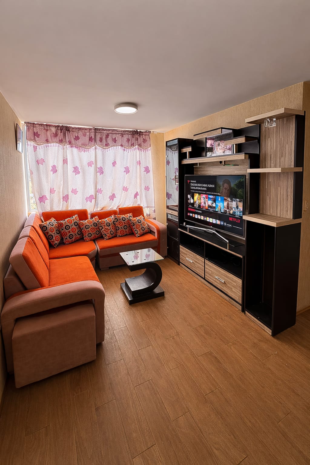 Willkommen in einer gemütlichen Atmosphäre. Genießen Sie einen ruhigen und komfortablen Ort für sich und Ihre Familie. Eine voll ausgestattete Wohnung mit optischem High-Speed-Internet. Genießen Sie Ihre Lieblingsfilme auf einem 55-Zoll-Smart-TV. Netflix, Amazon Prime. 20 Minuten vom Flughafen, 25 Minuten vom Zentrum von Lima. In der Nähe der Hauptstraßen (50 Meter), 10 Minuten von Einkaufszentren wie Megaplaza, Plazanorte, Busbahnhof, von wo aus sie in verschiedene Teile des Landes fahren.