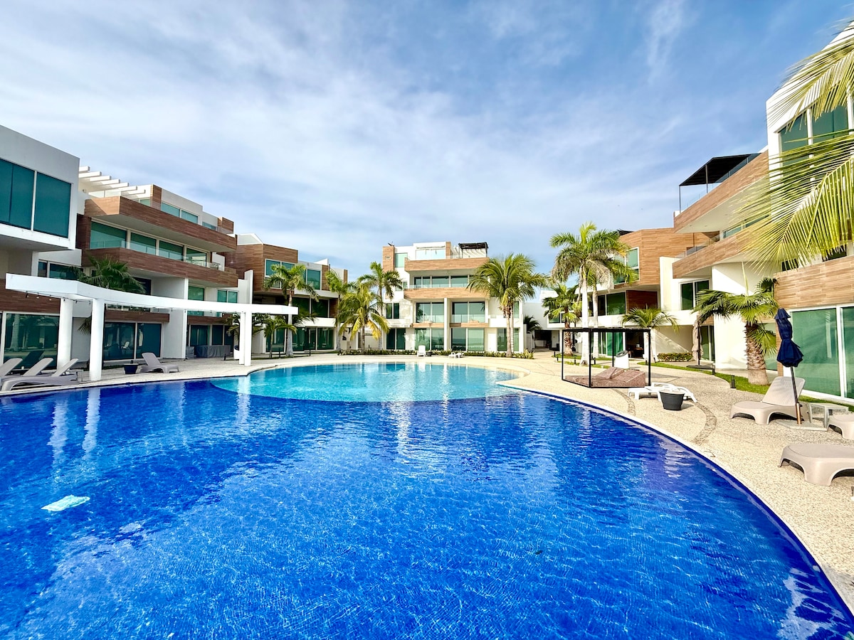 Disfruta de un penthouse de lujo, ideal para estancias cómodas y relajantes junto al mar 🏡 Espacios amplios y confortables Sala y comedor con A/A Cocina integral equipada, Terraza privada, completo. 🛏️ Hab. 1: 2 camas individuales, A/A y baño. 🛏️ Hab. 2: 2 camas matrimoniales, vestidor, terraza y baño. 🏙️ Suite en planta alta: A/A, baño, vestidor y sala privada 🌅 Terraza y Jacuzzi Vista espectacular a la playa 🏖️ Amenidades Alberca y chapoteadero Área de palapas, Regaderas
