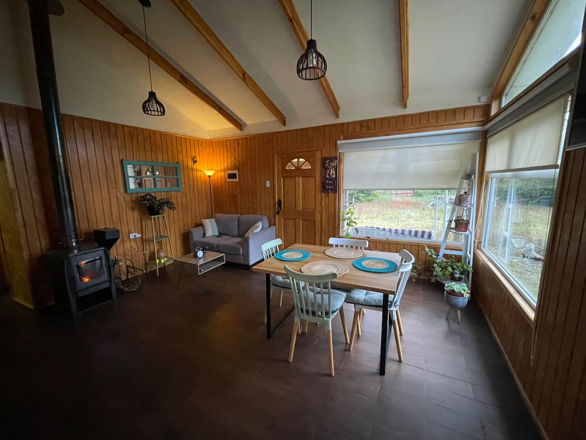 Rustikaler und gemütlicher Rückzugsort im chilenischen Patagonien Wache vor schneebedeckten Bergen und immergrünen Wäldern auf. Hütte für 3 Personen mit Holzofen, ausgestatteter Küche und Terrasse mit Grill. Echte Verbindung mit der Natur: kein WLAN oder Fernseher. Inklusive eines Willkommenspakets mit hausgemachten Produkten und der Möglichkeit, ein veganes, glutenfreies oder vegetarisches Frühstück hinzuzufügen. In der Nähe der Lagune von Los Palos, des Wasserfalls Cola de Gallo, des Wanderwegs El Tabo und der Bahía Acantilada. Nur 8 km von der Stadt entfernt. Komm und erlebe Patagonien