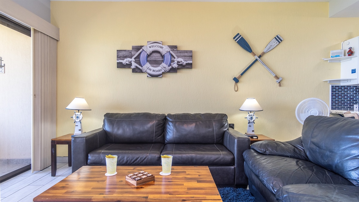 Es ist schwer, ein Schlafzimmer im Sonoran Sea Resort im Erdgeschoss zu finden. Außergewöhnlich renoviert für ein lustiges Strandgefühl, Ledersofas, ein Kingsize-Bett, Esstisch für zwei Personen und eine fantastisch renovierte Küche. Die Terrasse liegt direkt auf dem Rasen des Resorts, leicht in der Nähe aller Pools, der Swim-up-Bar und des Strandzugangs. Das Schlafzimmer verfügt über ein Kingsize-Bett, einen Spiegelschrank, einen TV und Zugang zum Badezimmer. Das Badezimmer hat eine separate Dusche und einen Waschtischbereich, die Küche ist stilvoll mit ihrer neuen Theke und Schränken.