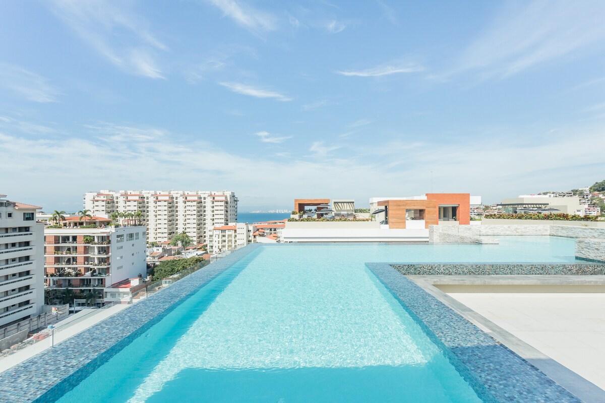 Meerblick, Sonnenuntergänge auf der Dachterrasse und das Beste von Puerto Vallarta vor der Haustüre. Diese moderne Wohnung mit 1 Schlafzimmer befindet sich hoch oben in der 11. Etage des luxuriösen 105 Sail View im Herzen der Zona Romántica – drei kurze Blocks vom Playa Los Muertos entfernt. Gehe nach draußen zu Cafés, Galerien, Strandclubs und Nachtleben… dann komm nach Hause, um Ruhe, Höhe und einen atemberaubenden Blick auf den Pazifik zu genießen. Morgens Kaffee auf deinem Balkon, nachmittags am Infinity-Pool, abends die Sonne im Meer versinken sehen – schwebend über allem.