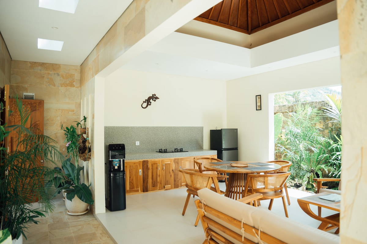 Promo - Bauarbeiten in der Nähe Tritt ein in eine durchdacht gestaltete Villa mit privatem Pool in einer ruhigen Gegend im Herzen von Kuta. Tias Villas ist ein entspannender Rückzugsort in der Nähe aller Restaurants, Geschäfte, Strände, Fitnessstudios und Yogastudios. Erkunde die magische Umgebung oder entspanne dich im tropischen Garten neben dem privaten Swimmingpool. ✔ 1 komfortables Schlafzimmer mit Kingsize-Doppelbett ✔ Vollausgestattete Küche ✔ Garten mit privatem Pool ✔ Arbeitsplatz ✔ High-Speed-WLAN ✔ Kostenloser Xeno-Gym-Zugang (300 m von der Villa entfernt)