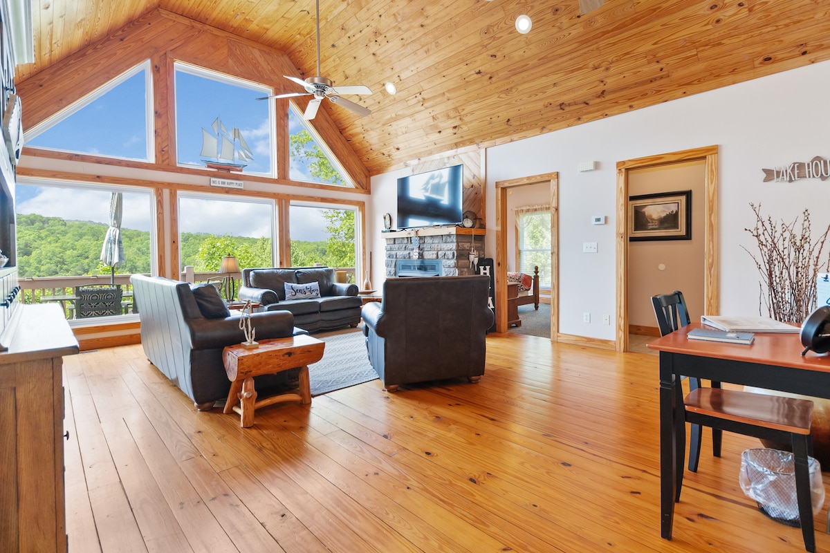 Dieses charmante, private Ferienhaus in einer geschlossenen Wohnanlage im Lake Cumberland Resort liegt auf einem 2 Hektar großen Grundstück im Daniel Boone National Forest und hat fantastische Bewertungen. Beobachte den Sonnenaufgang von der Hollywoodschaukel auf der Veranda und die Sonnenuntergänge von der Whirlpool-Terrasse rund um den Außenkamin aus. Versammle dich unter dem Sternenhimmel an einer Lagerfeuerstelle oder wandere über hundert Meilen auf Wanderwegen, die buchstäblich in deinem Hinterhof beginnen. Aktive Sicherheitspatrouillen, drei Swimmingpools, Bootsrampe, Bootsdock und Tennisplätze.