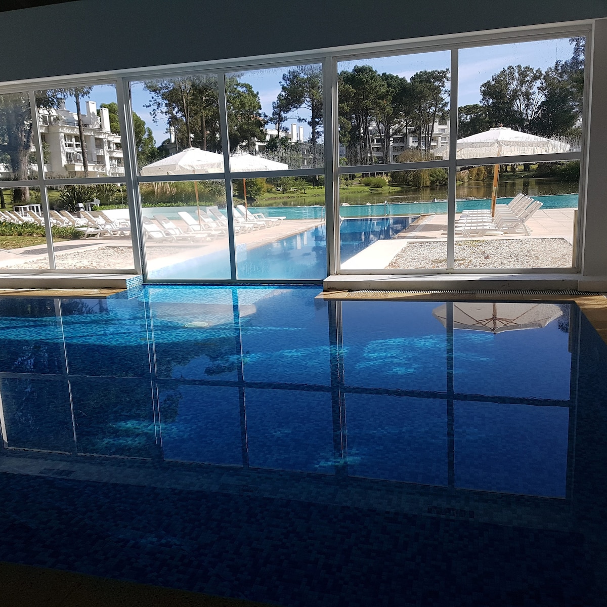 Entspanne dich in dieser ruhigen und eleganten Unterkunft. Genieße einen einzigartigen Blick auf Punta del Este. Sie verfügt über ein (offenes) Schlafzimmer, ein Badezimmer, eine ausgestattete Küche, eine Klimaanlage, WLAN, einen Smart-TV usw. ein 2-Sitzer-Bettgestell und 2 Einzelmatratzen. Die besten Dienstleistungen; einschließlich Innen- und Außenpool, Grill, Garage, Mikro-Kino, Fitnessraum, Spiele im Freien für Kinder, Zimmer (Kinder, Jugendliche und Erwachsene) Frag mich.