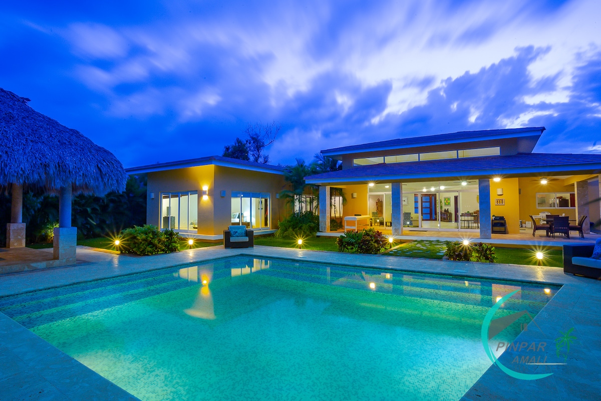 Villa Amanecer: Du bist in einer ruhigen Oase in Punta Cana! Diese luxuriöse Villa in einer sicheren Wohnanlage bietet Ruhe und modernen Komfort. Genieße einen privaten Pool, geräumige Zimmer und einen großen, komplett privaten Hinterhof. Mit Solarstrom, Wasserfiltration im ganzen Haus und Starlink-WLAN. Die weitläufige Küche ist perfekt für kulinarische Abenteuer. Nur 8 Minuten vom Flughafen PUJ, 2 Minuten von Lebensmittelgeschäften und Restaurants, 5 Minuten von der pulsierenden Innenstadt und 15 Minuten von atemberaubenden Stränden entfernt.