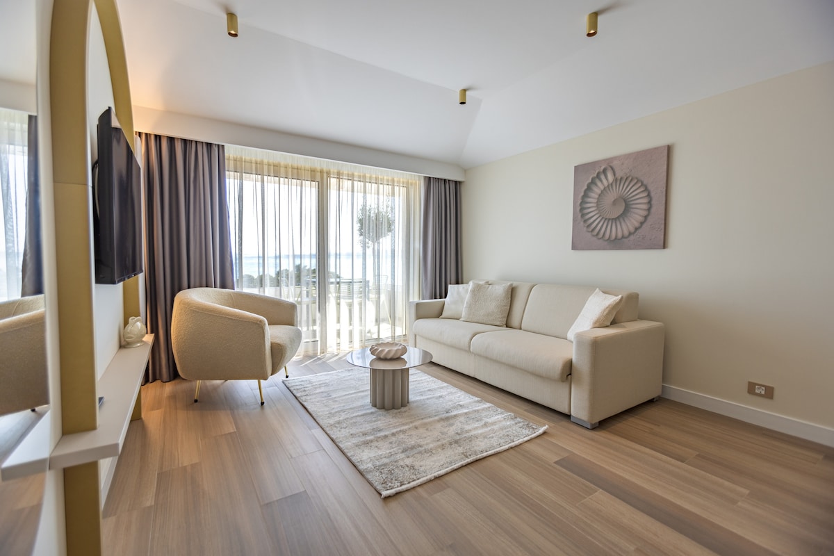 Wache mit atemberaubendem Meerblick in der One&Only-Wohnung auf, einem hellen und eleganten Kurzurlaub für ultimative Entspannung. Mit seinem luftigen Interieur, dem gemütlichen Wohnbereich und der geräumigen Terrasse, die sich perfekt zum Sonnenbaden oder Brunch mit Aussicht eignet, bietet diese Wohnung einen perfekten Rückzugsort. Nur wenige Schritte vom Strand und einem schönen Meeresspaziergang von der lebhaften Altstadt entfernt, ist es eine perfekte Mischung aus Komfort und Inselcharme.