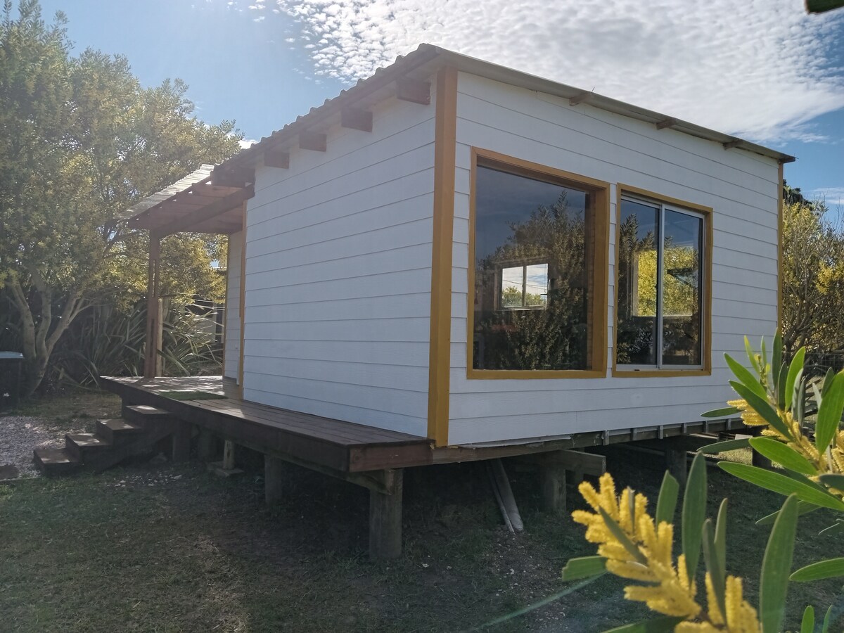 Schönes Haus in Punta Rubia. Warme 36 m2 in einer ruhigen und sicheren Gegend, anderthalb Blocks vom Strand entfernt, mit Supermärkten und Orten, um Lebensmittel in Gehweite zu kaufen. Hell, komfortabel, rustikal, mit ausgestatteter Küche und einer großen abgestuften Terrasse, um den Sonnenuntergang zu genießen und dem Rauschen des Meeres zu lauschen... Ein kleines Refugium, das Architektur, Kunst und die Liebe zur Natur verbindet.
