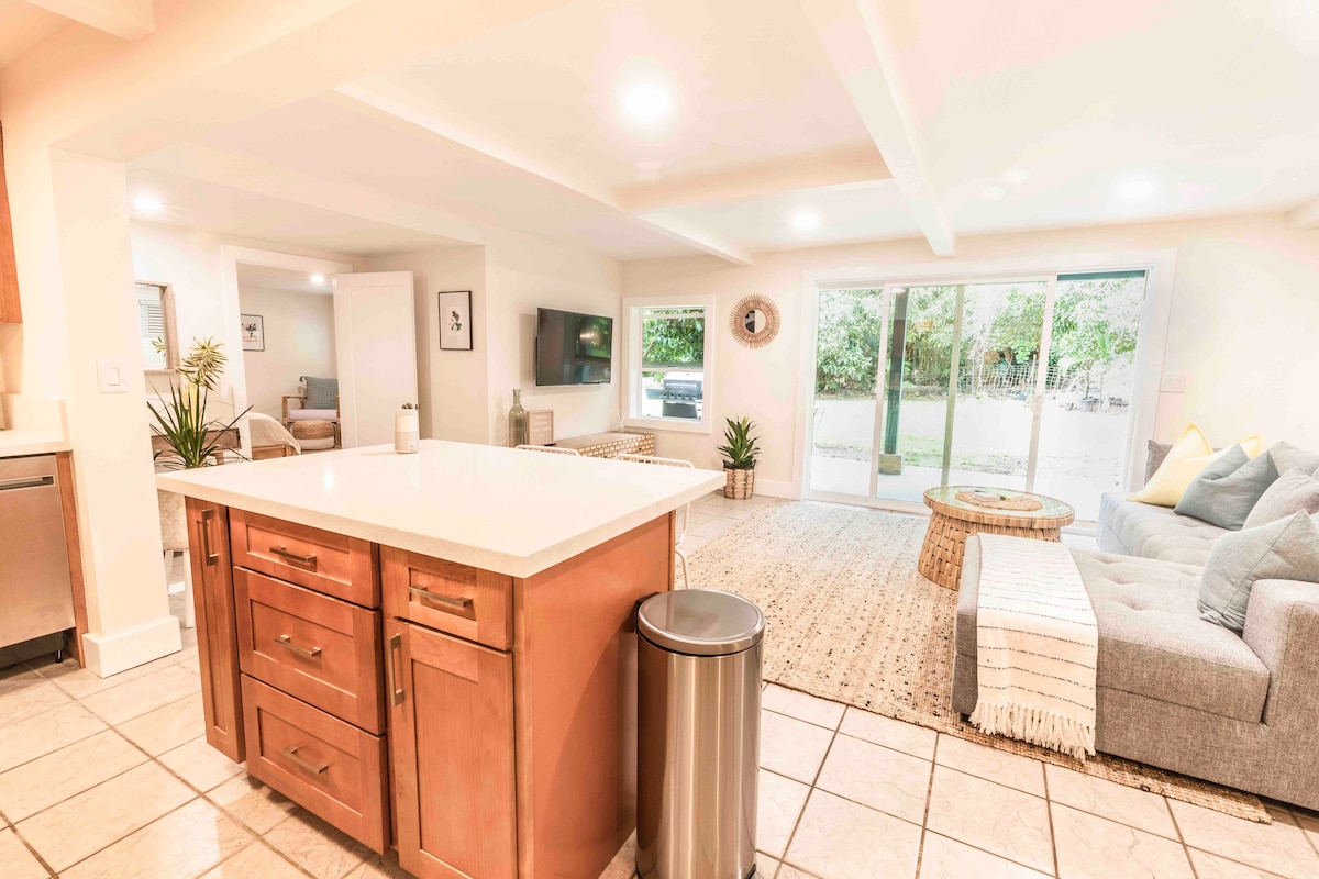 Unsere neu gebaute super private Gästesuite befindet sich am Sunset Beach an der Nordküste von Oahu. Kurzer Spaziergang zum Strand & Ted's Bakery. Das Parken ist kostenlos und direkt an Ihrer Haustür. Kochnische & Badezimmer sind komplett ausgestattet. Neue Geräte, Jalousien, Matratzen, Bettwäsche, Handtücher und sehr ruhige Split-AC-Einheit! Wir vermieten nur für 30 Tage, um die lokalen Gesetze für Kurzzeitvermietungen einzuhalten.