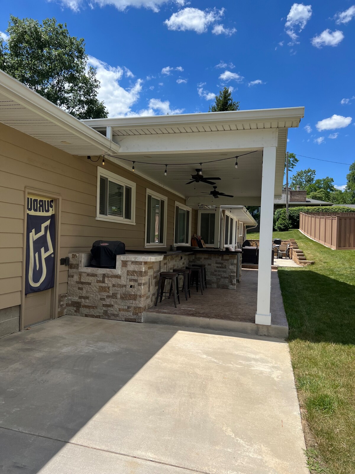 Bring die ganze Familie in diesen tollen Ort mit viel Platz für Spaß. Nur wenige Schritte vom Purdue-Campus, von Sportveranstaltungen und vom Golfplatz entfernt. Großer eingezäunter Garten mit alten Bäumen, großer Terrasse, einem Wintergarten, einem Grill und einer Feuerstelle. Neue 14-Game-Arcade und Tischfußball. Geräumige 4 Schlafzimmer + Keller bieten ausreichend Platz. Neue Möbel im ganzen Haus. Große Küche mit großen Fenstern und schöner Aussicht. Wäscherei vor Ort inklusive Waschmaschine/Trockner. Highspeed-Gigabit-Internet, 4 SmartTVs mit Netflix