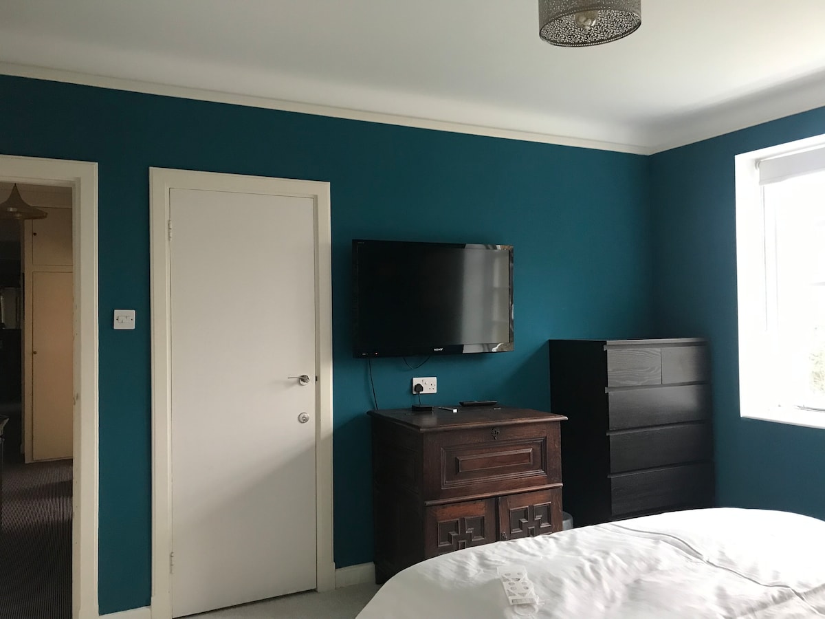 Moderne stilvolle 1-Bett-Wohnung mitten in Raynes Park. Sehr günstig gelegen mit Sainsbury's nebenan und Waitrose 3 Gehminuten entfernt. Die U-Bahn-Station Raynes Park liegt nur 2 Gehminuten entfernt – Züge fahren alle 4–6 Minuten und brauchen 19–21 Minuten von/nach London Waterloo. Ideal gelegen für Wimbledon Village und die Tennismeisterschaften. Die Wohnung wurde kürzlich mit hochwertigen Möbeln eingerichtet. Es gibt ein Kingsize-Bett im Schlafzimmer mit einer zusätzlichen Einzelmatratze unter dem Bett für separates Schlafen.