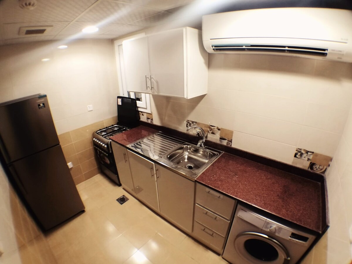 Have fun with the whole family at this stylish place. at 3 minutes' walk from the metro station. Coffee shops, restaurants, Carrefour, pharmacies, shopping center at the ground floor of the building. Playing ground for the kids and fountain at the common ground floor. Few minutes walk from Lusail fun Zone.