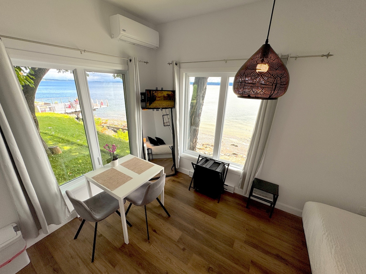 Keine Partys erlaubt. Maximal 6 Personen. Schöne Wohnung im 2. Stock. Einzigartiger Blick und direkter Zugang zum St. Lawrence River. Offener Raum mit Kathedralendecke, einschließlich Küche, Esszimmer und Wohnzimmer. 2 Schlafzimmer mit Queensize-Betten und 2 Sofas, die sich in Einzelbetten verwandeln lassen. Gemeinsamer Zugang zu einem Aussichtspunkt, einem beheizten Pool, Feuerstellen, einem Grill usw. CITQ #310546 Eine weitere Unterkunft im 1. Stock desselben Gebäudes: airbnb.ca/h/petit-paradis-du-st-laurent