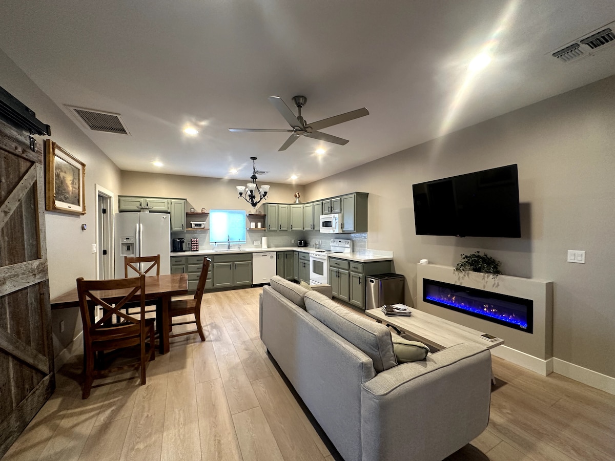 The Hill's Bungalow, eine wunderbar charmante Casita mit separatem, privaten Eingang und Parkplatz. Gehe morgens hinaus, beobachte den Sonnenaufgang und setze dich auf die private hintere Veranda, um den Sonnenuntergang zu erleben. Individuelle Oberflächen und große Fenster öffnen sich zu einer Gourmet-Küche/großem Gemeinschaftsraum, einem halben Bad, 50-Zoll-TV und Highspeed-WLAN. Ein Kingsize-Bett mit einem großzügigen, kompletten Bad macht das Entspannen einfach. Zu Fuß zu Wanderwegen, eine 2-minütige Fahrt zur Innenstadt von FH, 10 Minuten nach Scottsdale oder 35 Minuten nach Sky Harbor.
