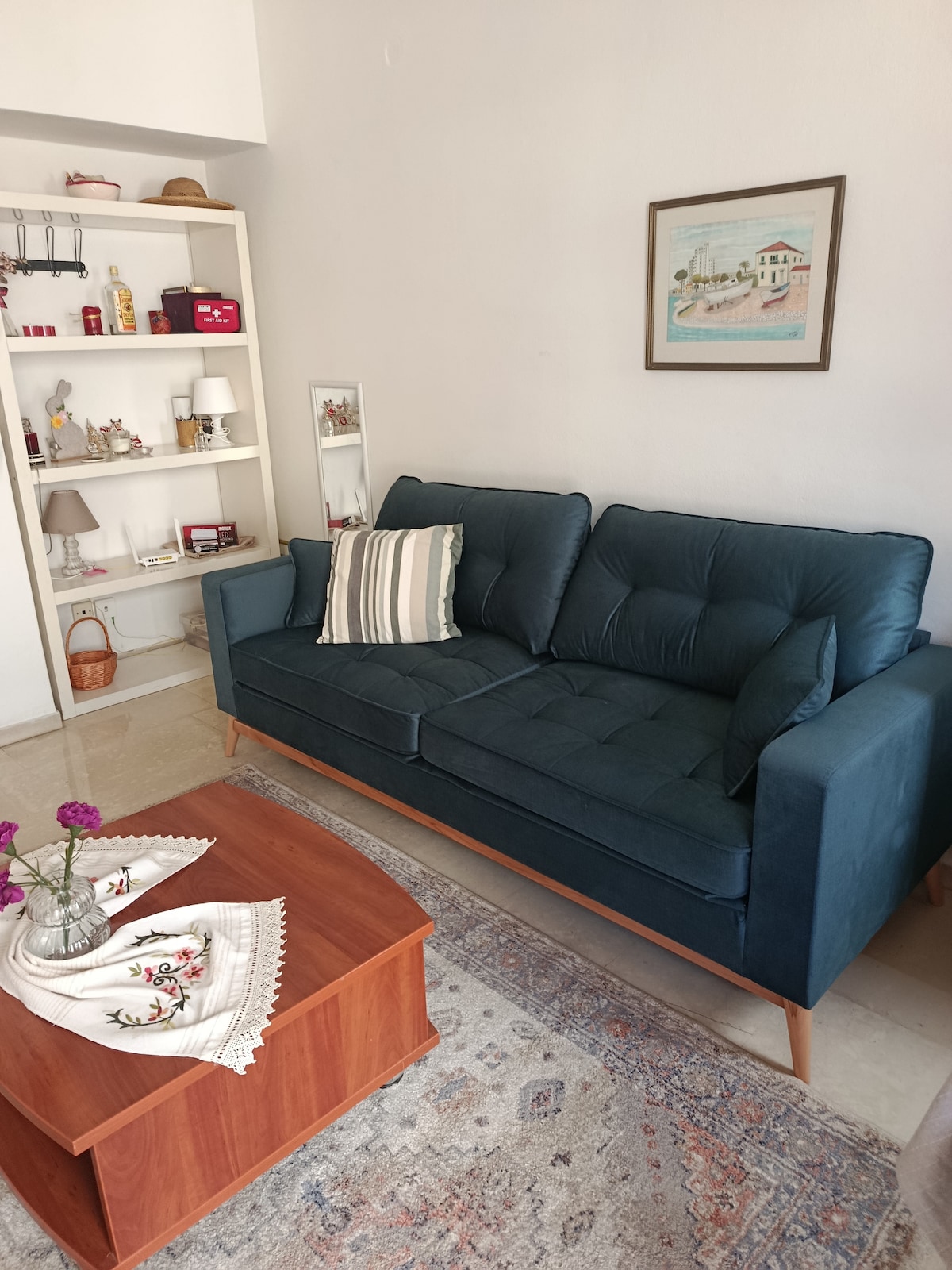 Die Wohnung befindet sich im Zentrum der Stadt Artemis, nur 50 m vom Meer und nur 11 km vom Flughafen entfernt Es verfügt über ein großes Doppelbett und nach Rücksprache mit dem Verwalter kann ein Schlafsofa (bequeme Matratze 20cm) und ein Kinderbett (siehe Fotos Nr. 15-16-17-18) für ein Paar mit einem Kind und einem Baby hinzugefügt werden Verfügbar sind ein SMART TV 43 LED - Brettspiele usw.