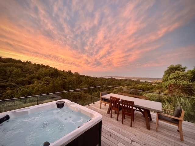 Ahi in der Koru Lodge mit Meerblick und Spa-Pool