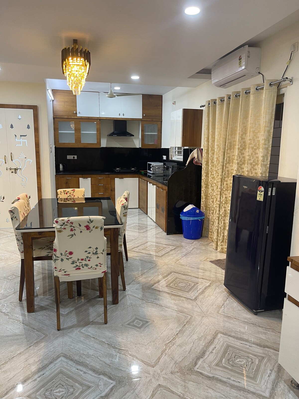 Willkommen in unserer stilvollen 3 BHK-Wohnung, ideal für kurze oder lange Aufenthalte. Genieße 3 klimatisierte Schlafzimmer mit angeschlossenen Bädern, ein gemütliches Wohnzimmer mit einem 43-Zoll-Smart-TV, Highspeed-WLAN und eine Innenschaukel. Die voll ausgestattete Küche verfügt über einen Gasherd, eine Mikrowelle, einen RO-Reiniger, einen Kühlschrank und Utensilien. Günstig in der Nähe von Hitech City Metro, Usha Malpuri's Kitchen (100 m), US Visa Center (1 km), Cable Bridge und wichtigen IT-Hubs gelegen.