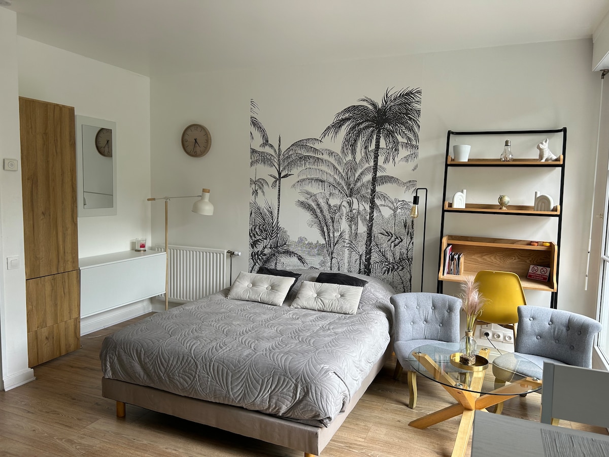 Willkommen im JoyNest! Dieses 21 m² große Studio befindet sich 5 Gehminuten vom Bahnhof und dem Stadtzentrum entfernt und wurde in einem kleinen Gebäude im "Amiénoise"-Stil renoviert. Es bietet allen modernen Komfort: neue Bettwäsche (160 x 200), SmartTV und MolotovTV, WLAN, Nespresso, Waschmaschine, Mikrowelle, Backofen, Ceranfeld, Kühlschrank. Bettzeug und Handtücher sind vorhanden. Check-in/out mit Schlüsseltresor. Perfekt, um die Stadt zu Fuß zu erkunden (Kathedrale, Hortillonnages, Stadtteil Saint-Leu) oder Paris mit dem Zug in 1:15 zu erreichen