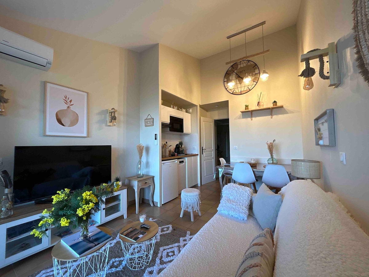 Renoviertes Studio, freie und bepflanzte Aussicht, 700 m zum Strand