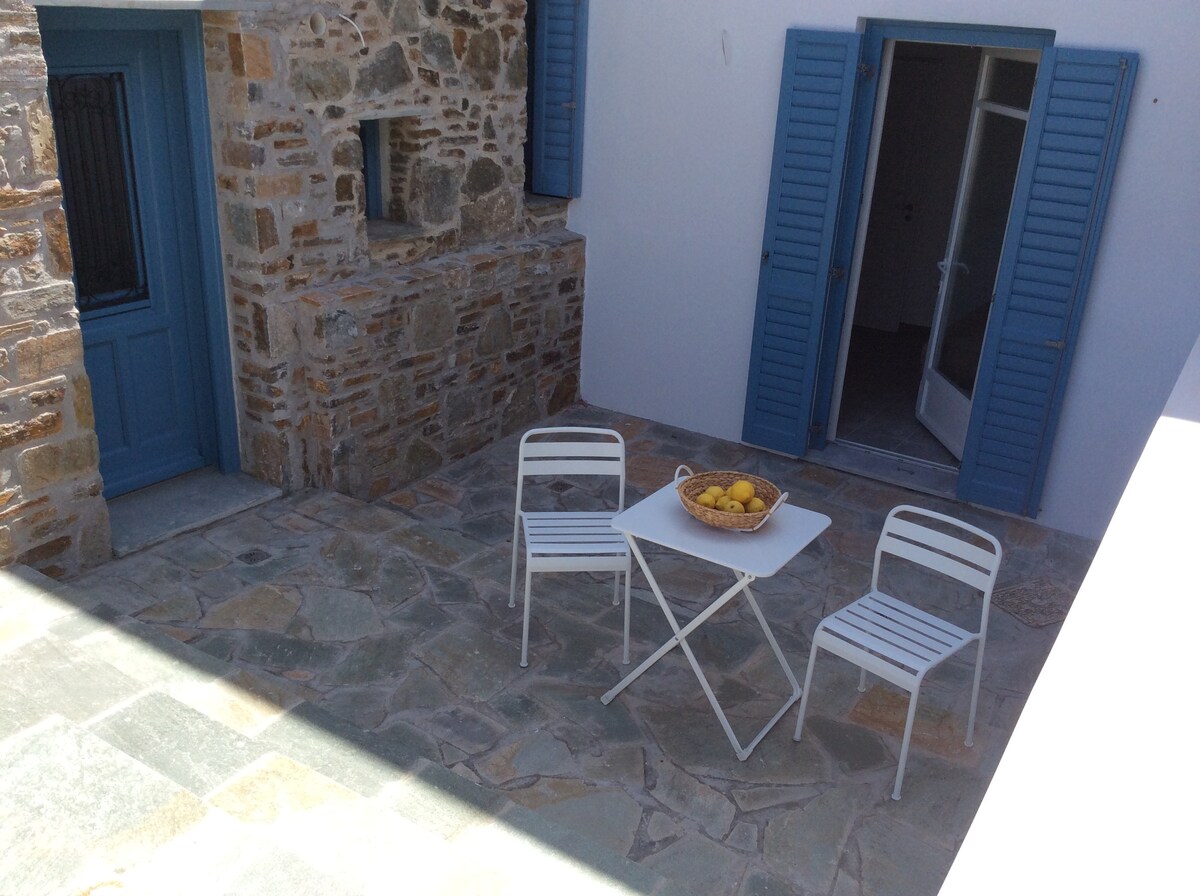 Traditionelles Inselhaus am Strand. Das Hotel liegt in einem Komplex, am ruhigen Strand „Karavi“, nur wenige Gehminuten vom Hafen entfernt (13 Minuten zu Fuß). Das Haus ist 90 m² groß, komplett ausgestattet und in zwei Ebenen unterteilt. Auf der unteren Ebene befinden sich die beiden Schlafzimmer, das Wohnzimmer und die beiden Badezimmer. Auf der oberen Ebene befinden sich die Küche und das Wohnzimmer in einem offenen Raum. Der Außenbereich besteht aus zwei Terrassen. Es gibt private Parkplätze neben dem Haus nur für die Bewohner des Komplexes.