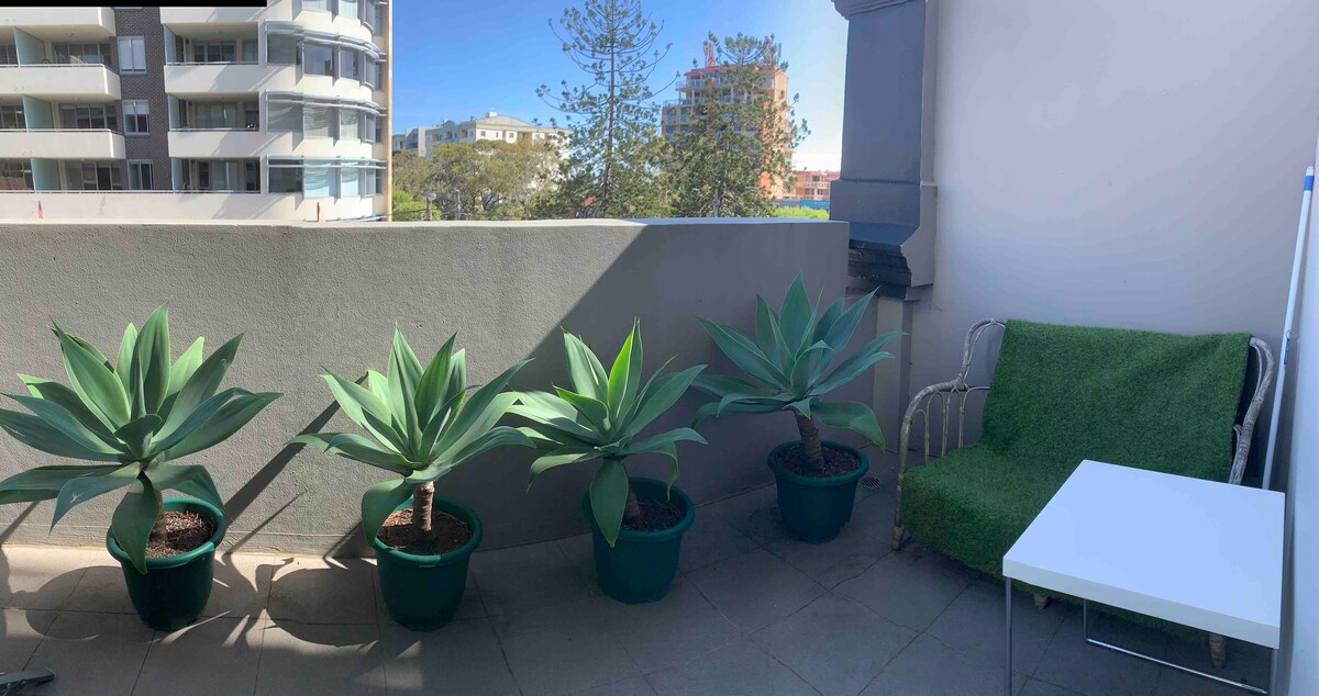 Willkommen in unserem grünen Innenhof-Studio – ein ruhiger Rückzugsort, neu renoviert mit einem frischen und funky Design und nur 10 Gehminuten vom goldenen Sandstrand Coogee Beach entfernt. Du hast deinen eigenen Eingang, deine eigene Privatsphäre, aber wenn du etwas brauchst, sind wir in der Nähe... Erhalte einen Willkommenskorb mit Wein, Eiern, Milch, Brot sowie einer Nespresso-Maschine und Netflix...!