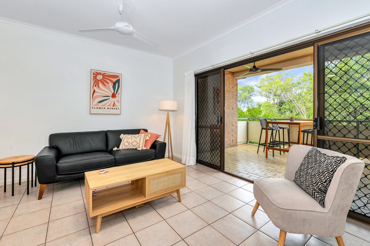 Genieße ein stilvolles Erlebnis an diesem ruhigen, zentral gelegenen Ort. Passend für 2 Paare oder Familie. Voll klimatisiert mit 2 Schlafzimmern, 1 Queensize-Doppelbett mit eigenem Bad, 1 Doppelbett mit ausklappbarem Einzelbett. 2. separates Badezimmer mit Dusche. Großer Balkon mit Ventilator im Freien zum Essen oder Entspannen. Enthält 2 sichere Parkplätze. Nur wenige Gehminuten von der Küste, dem öffentlichen Schwimmbad, den Restaurants Märkten und Geschäften entfernt. 10 Autominuten vom Flughafen und 15 Minuten von Darwin City entfernt. In der Nähe von Bushaltestellen.