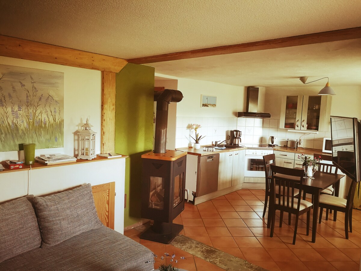 Das Apartment befindet sich in einem liebevoll modernisierten Haus im idyllischen Dorf Vieregge – ein echter Geheimtipp für alle, die fernab der Touristenströme Ruhe und Natur genießen möchten. Die 34 m² große Wohnung ist durch große Fenster und Oberlichter wunderbar lichtdurchflutet und überzeugt mit geschmackvoller, klarer Einrichtung und eigener Terrasse. Zur Ausstattung gehören ein separates Schlafzimmer, ein modernes Bad sowie ein großzügiger Wohn- und Essbereich mit offener Küchenzeile.