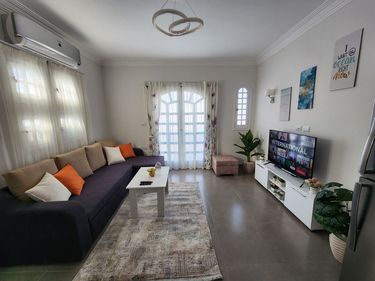 Lucky Step Apartments – brandneues, luxuriöses Apartment mit 1 großzügigem Schlafzimmer und Wohnküche, ideal für Paare oder Singles in Sharm el‑Sheikh, nur wenige Schritte vom Strand und Farsha Beach Club. Restaurants, Cafés und Supermärkte sind um die Ecke. In der lebendigen, aber ruhigen Gegend verbinden sich europäisches und ägyptisches Leben. Genießen Sie die voll ausgestattete Küche, eine private Sitzecke im Freien und hochwertige Ausstattung – perfekt zum Entspannen und Sonnenbaden.
