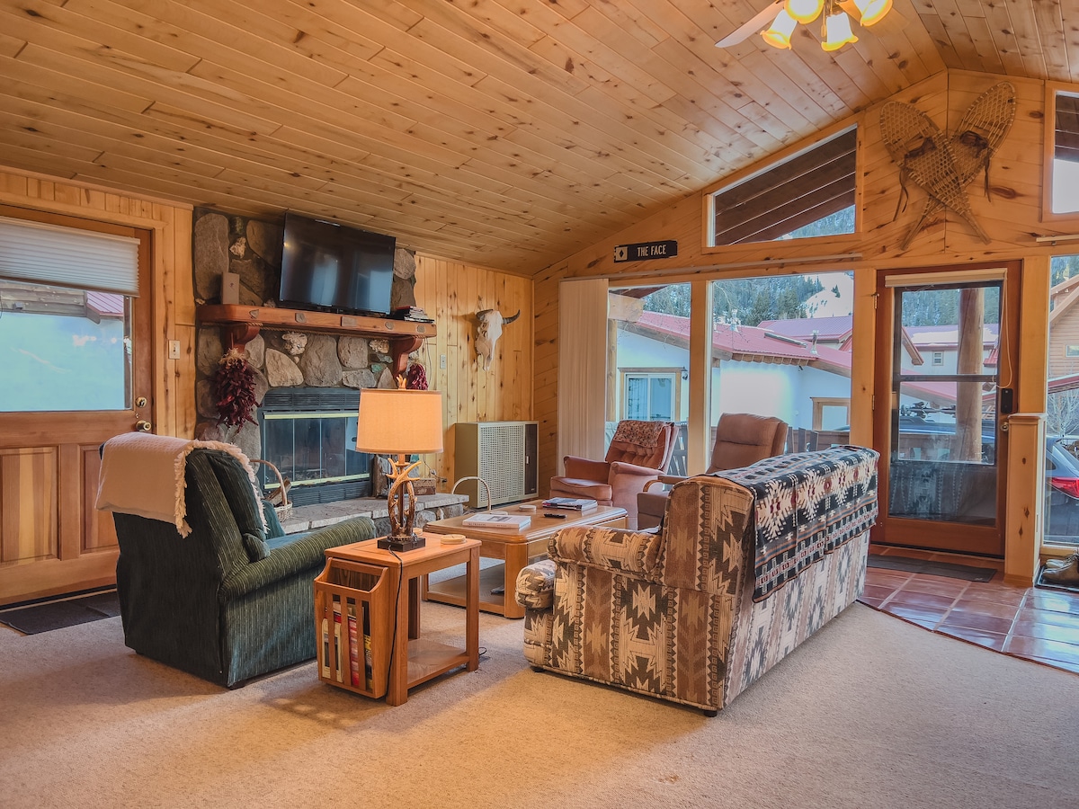 Lieber Gast, ich arbeite hart daran, dies wie ein zweites Zuhause zu machen. Große Veranda auf der Vorder- und Rückseite, vorne bekommt ein bisschen Sonne. Gemütliche Hütte, nur wenige Gehminuten vom Charme des Red River, Skipisten, Wandern, Jeeping, Musiklokalen und keine Franchises entfernt! Alles, was Sie brauchen, um sich wie zu Hause zu fühlen. Umgeben von Bergen und Natur. Große Küche, versunkenes Wohnzimmer. Schönes Essen mit Aussicht. Kann sechs Schlafplätze, aber perfekt für vier. Viele Extras. Waschmaschine/Trockner in voller Größe. Viel Spaß!