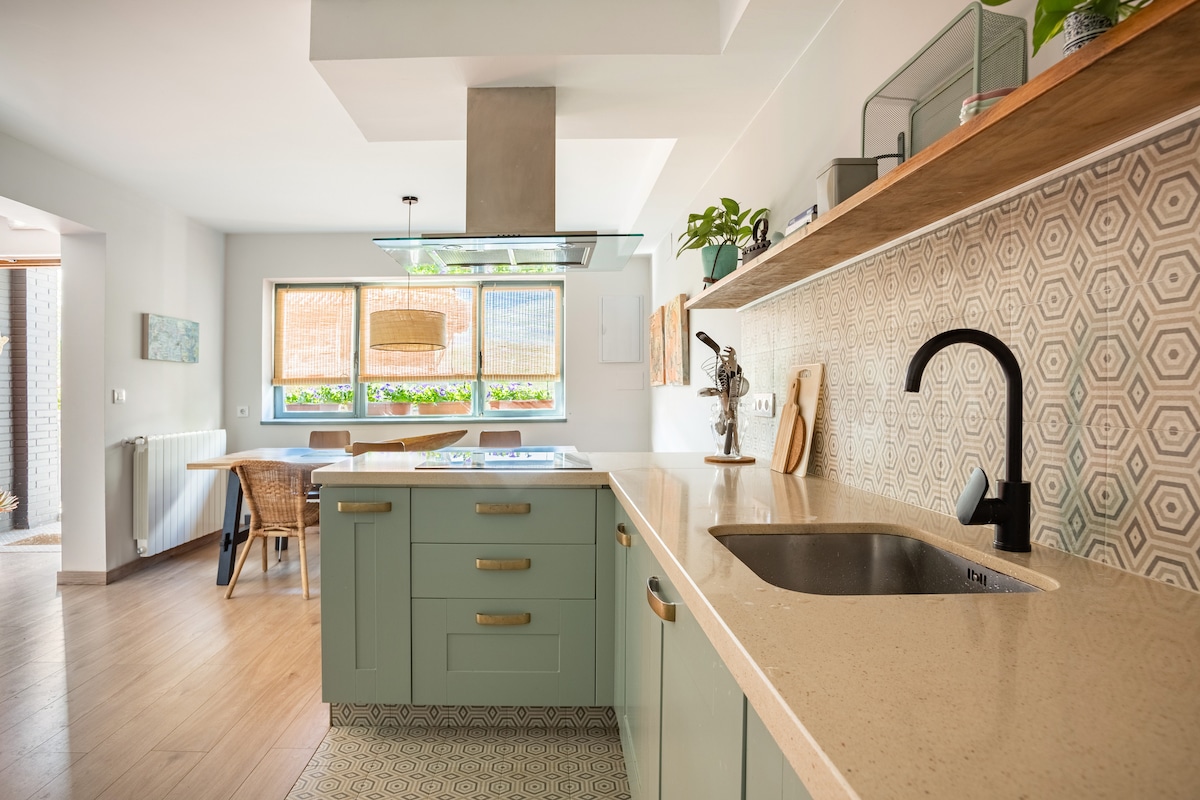Lösen Sie sich von der Routine und verbinden Sie sich wieder mit der Natur. Unser ländliches Haus, umgeben von Bergen, ist der perfekte Rückzugsort für diejenigen, die Ruhe und schöne Landschaften suchen. Große Fenster füllen die Zimmer mit Tageslicht und bieten einen Blick auf die Umgebung. Nur eine kurze Autofahrt entfernt, ermöglichen es dir die Küste und ihre atemberaubenden Strände, sowohl das Meer als auch die Berge in einem Urlaub zu genießen. Natürliche Materialien und Außenbereiche laden zum Entspannen und Erholen in deinem eigenen Tempo ein.