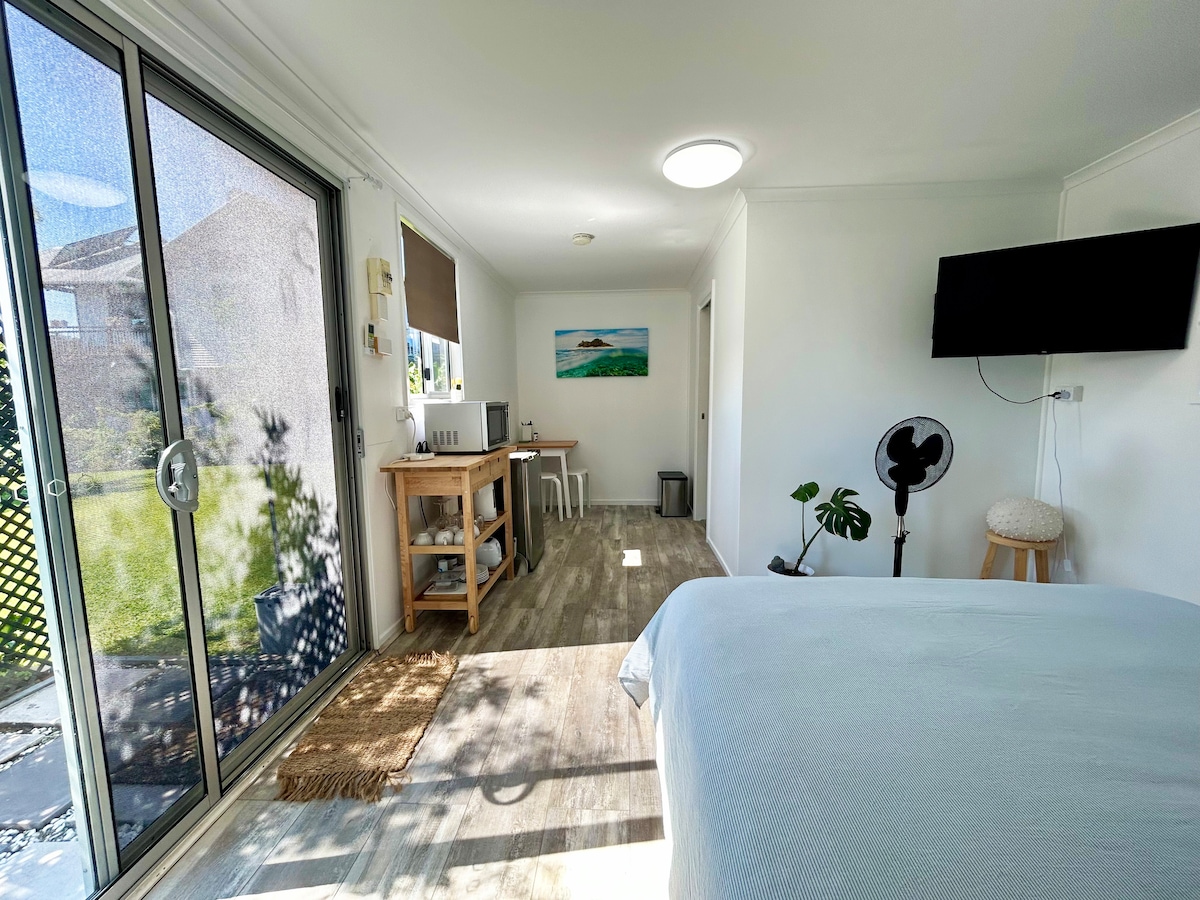 Perfekt für lange und kurze Aufenthalte! Vollständig eigenständiges, ruhiges Tiny House mit einem komfortablen „elektrischen“ Queensize-Bett zum Ansehen des 55-Zoll-Großbild-Smart-TVs mit Netflix, Klimaanlage, deinem eigenen voll ausgestatteten privaten Badezimmer, (nicht gemeinsam genutzt) großer Dusche, Küchenzeile mit eigenen Kochgelegenheiten. Das Hotel liegt in einer sehr sicheren, ruhigen Straße, nur 400 m vom Dorf Wellington Point mit tollen Restaurants und allen Geschäften entfernt, die du brauchen könntest. In der Nähe der Fähre und des Bahnhofs von Stradbroke Island.