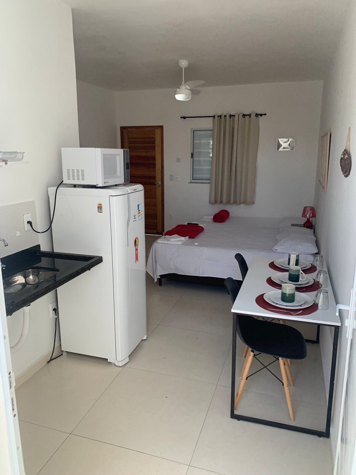 Entspannen Sie sich mit der ganzen Familie in dieser ruhigen und komfortablen Unterkunft. Nur 150 Meter von Prainha entfernt. (Unterkunft mit Aktionspreisen). Unbegrenztes WLAN und Smart-TV mit Streaming-Diensten inklusive. KITNET FÜR BIS ZU 6 PERSONEN! Anzeige mit Basispreis für bis zu 4 Gäste. Der fünfte und der sechste Gast zahlen einen Aufpreis! Wir haben weitere Kitnet-Unterkünfte, Apartments mit einem und zwei Schlafzimmern. (mit und ohne Klimaanlage). WEITERE INFORMATIONEN ERHALTEN SIE UNTER "MIT DEM GASTGEBER SPRECHEN".