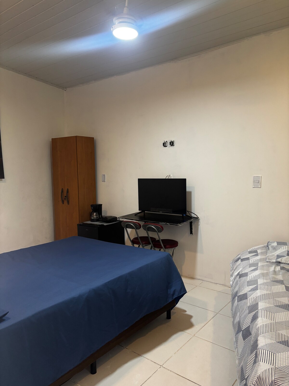 Suite 400 m von der Innenstadt entfernt. Die Suite des Paares ist die beste Option, um in die Nähe von allem zu kommen, was die Stadt hat. Es ist etwa 900 m von Praia do Forte entfernt und mit allem in der Nähe: Märkte, Bäckereien, Apotheken, Restaurants, Bushaltestellen usw. Die Doppelsuite ist privat: Sie verfügt über ein Doppelbett, eine Minibar, eine Mikrowelle, einen Sandwichmaker und eine Klimaanlage. Im Außenbereich gibt es einen kühlen Raum mit Tischen zum Entspannen, wenn du vom Strand ankommst. TV mit Zugang zu Streams; SPLIT-KLIMAANLAGE.